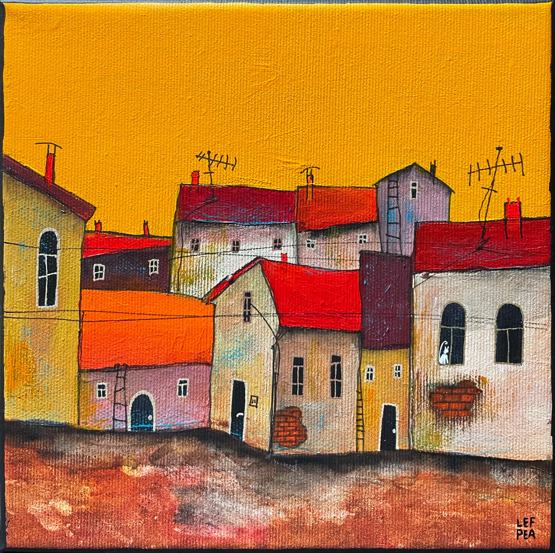 Procházka městem "Chodím po střechách" - 20x20cm