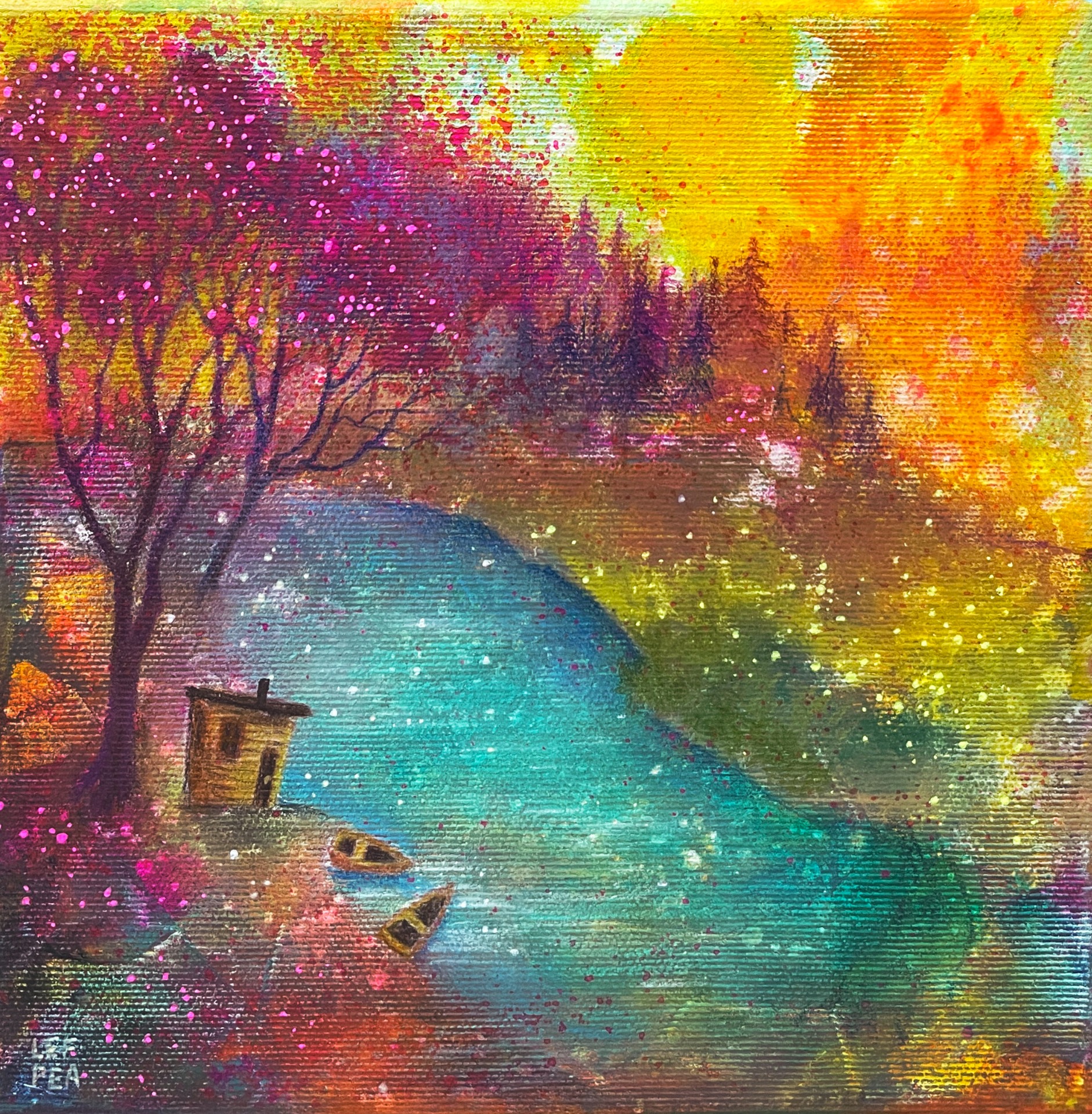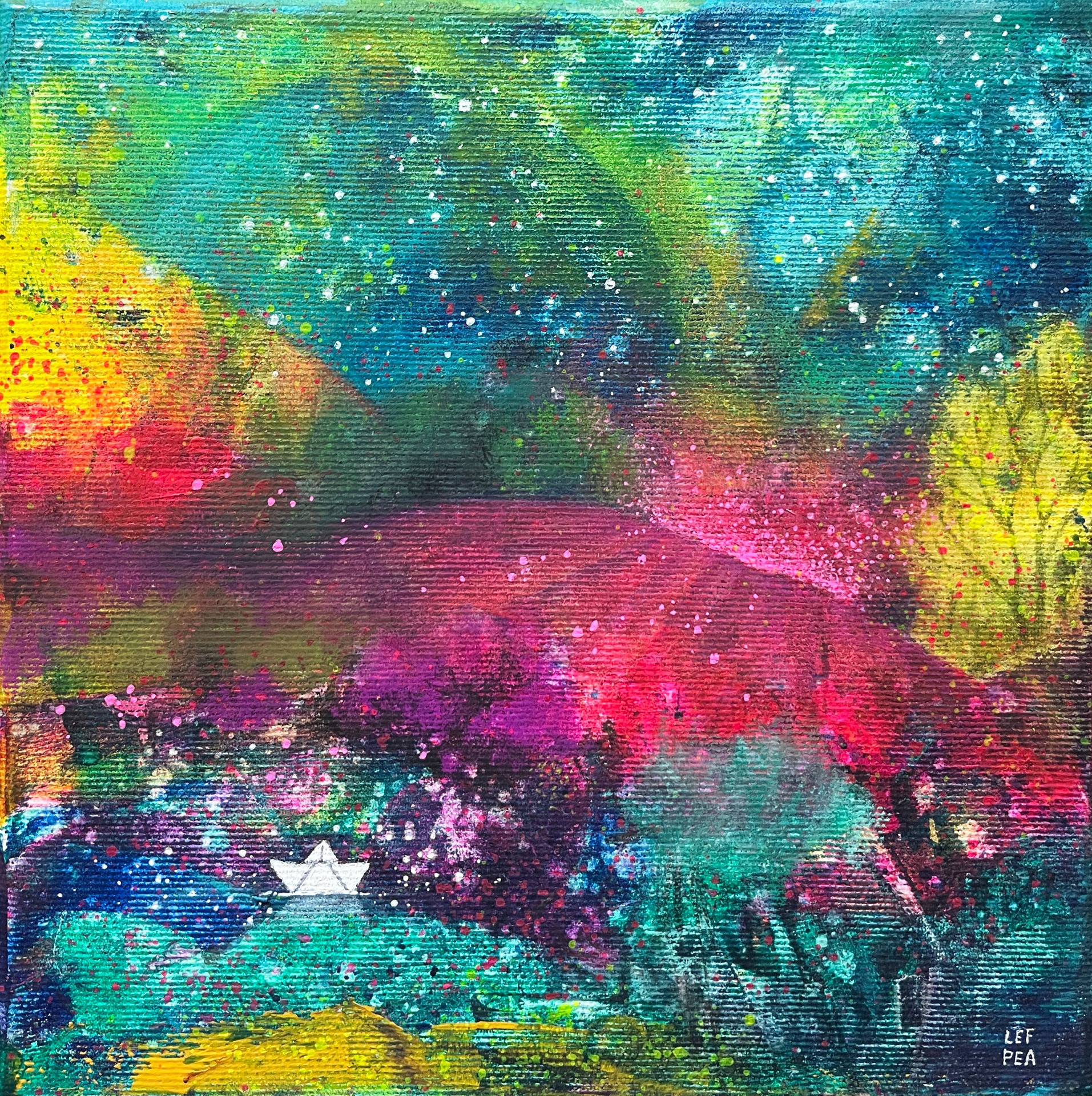 Krajina s papírovou lodičkou - 20x20cm
