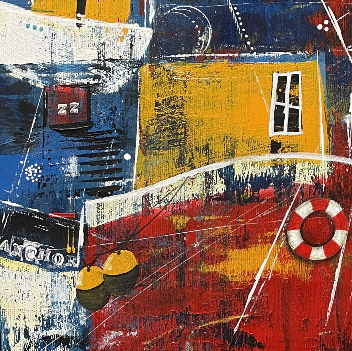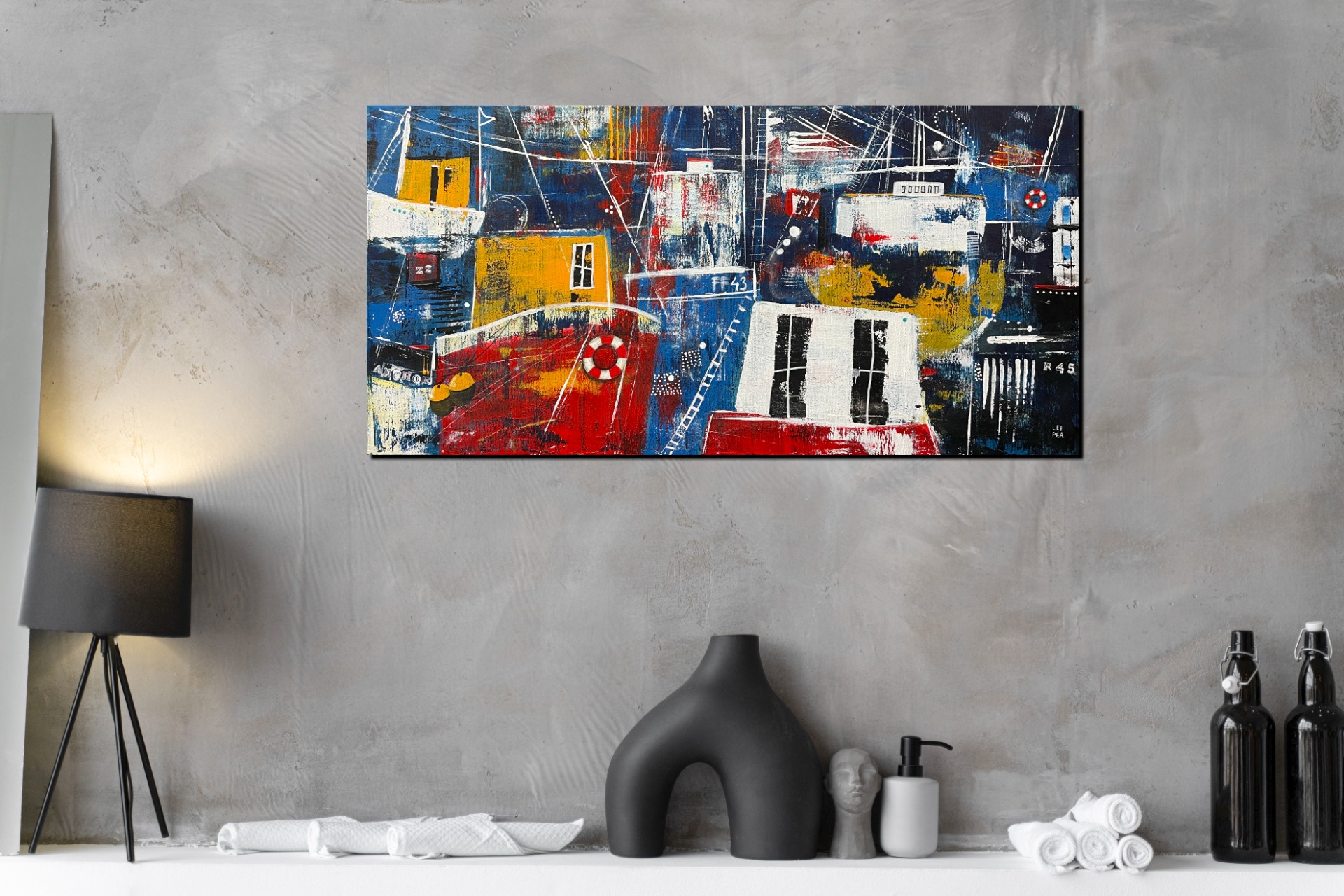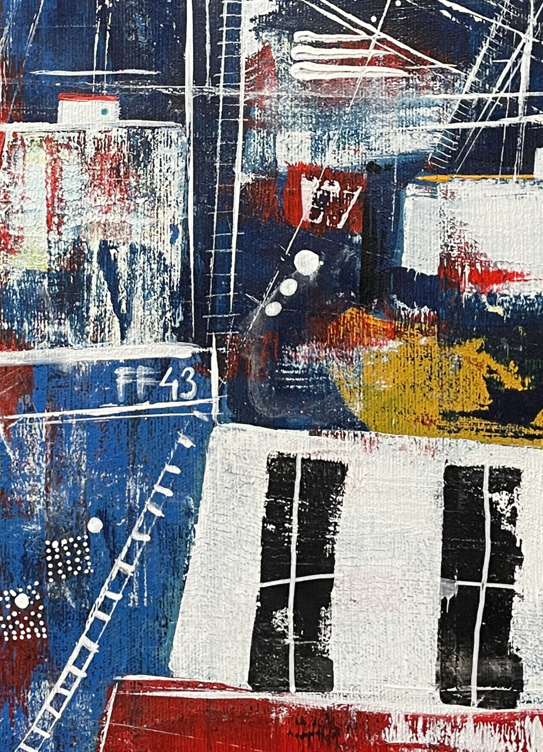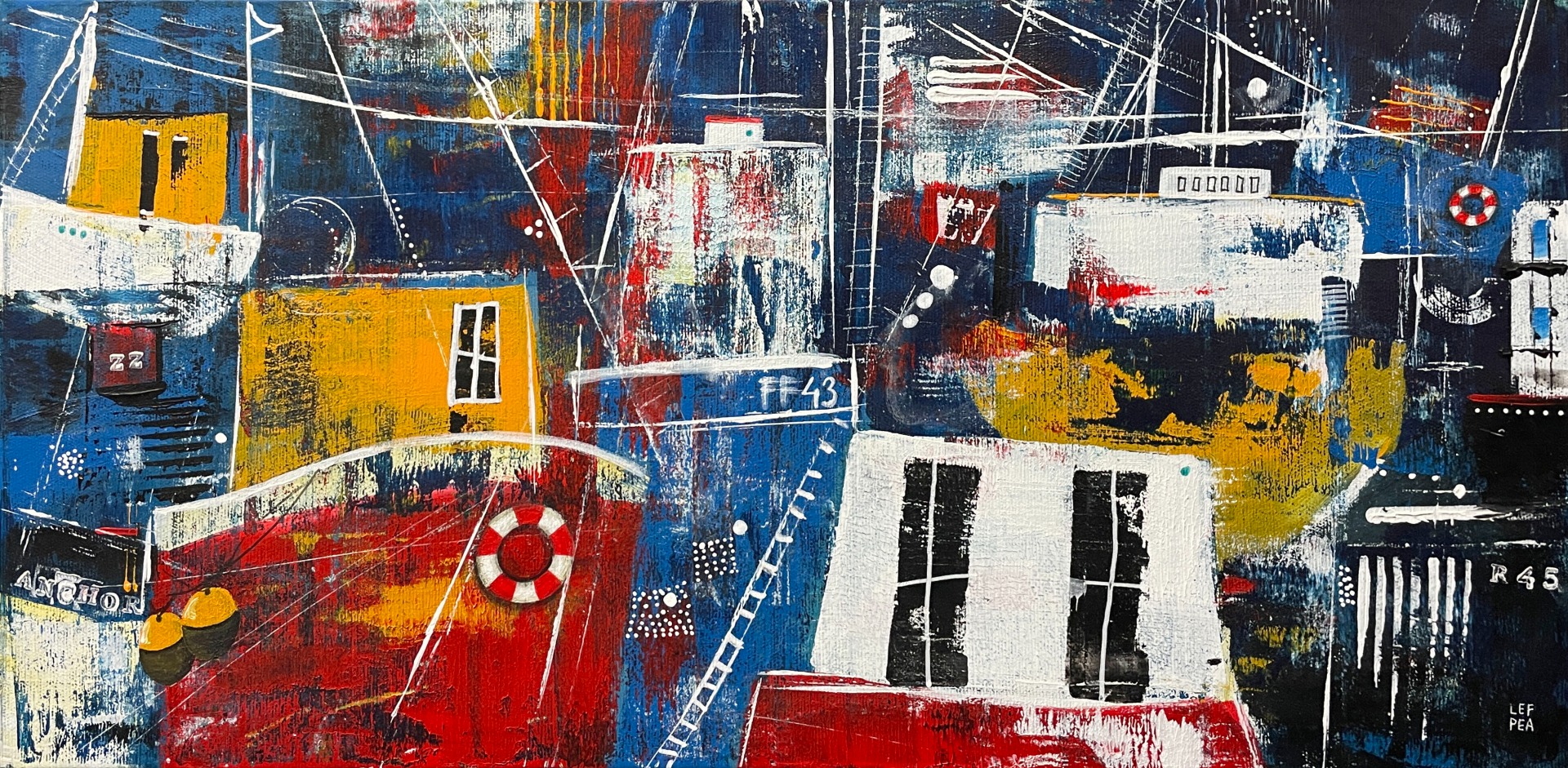 Není to jen pohled na přístav, ale i jeho vnitřní vrstvy, rytmus a život. Struktury a barvy zdůrazňují emoce. Anatomie přístavu s radostí a hravostí pro duši námořníčka.