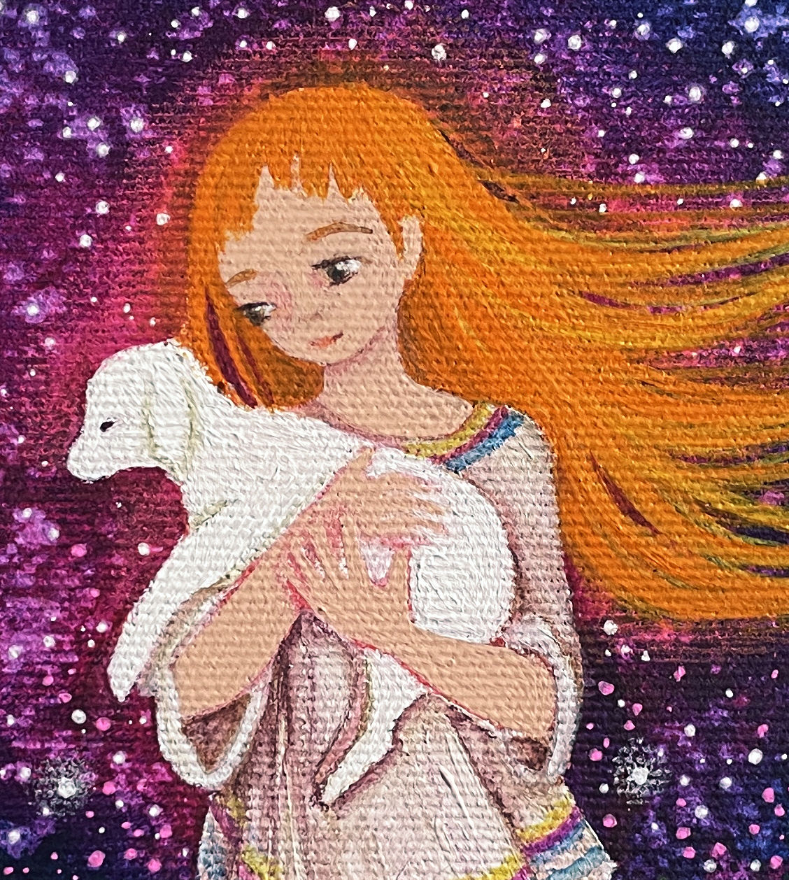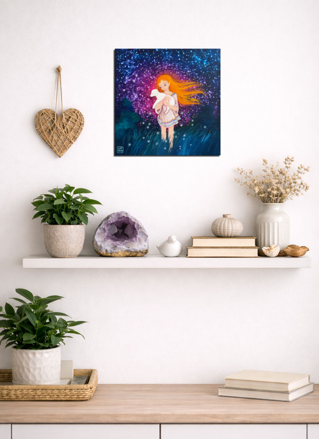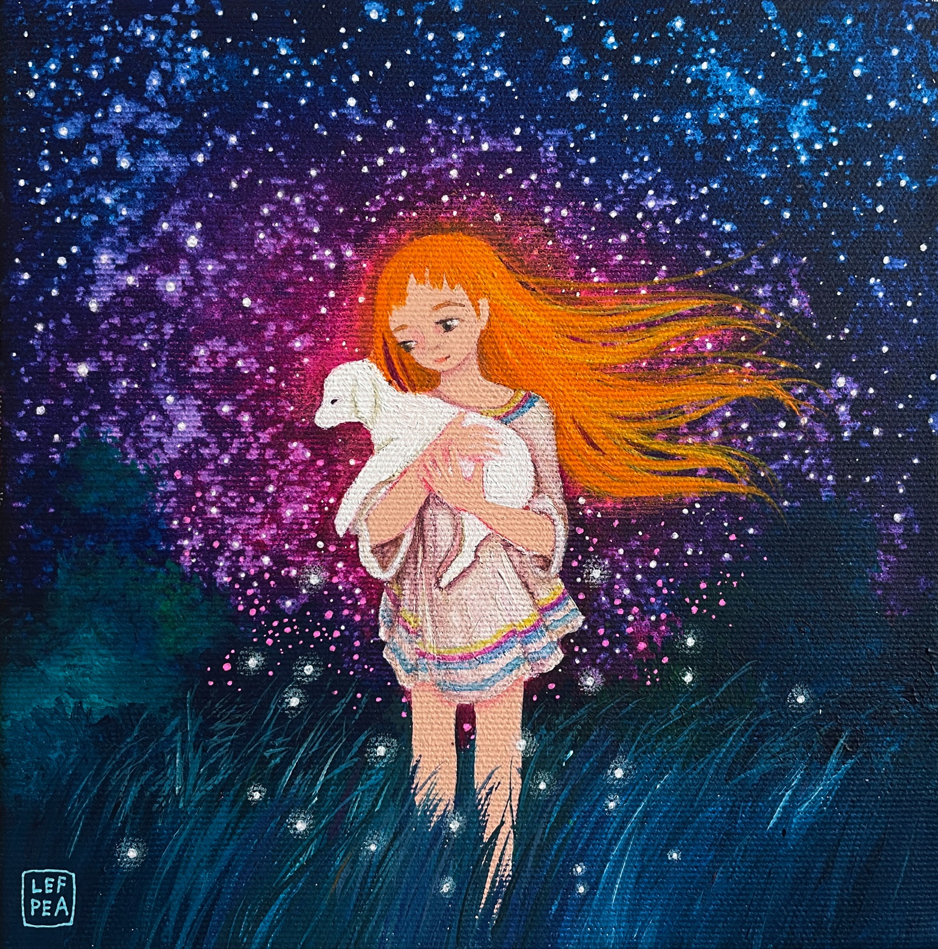 Barevnost se může ve skutečnosti malinko lišit dle závislosti na nastavení monitoru a množství světla při fotografování. Malovány i hrany, netřeba rámovat. Ošetřeno závěrečným lakem.Signováno LEF PEA. Na obraz i jeho kopie popř. tištěné fotografie se vztahují autorská práva.
