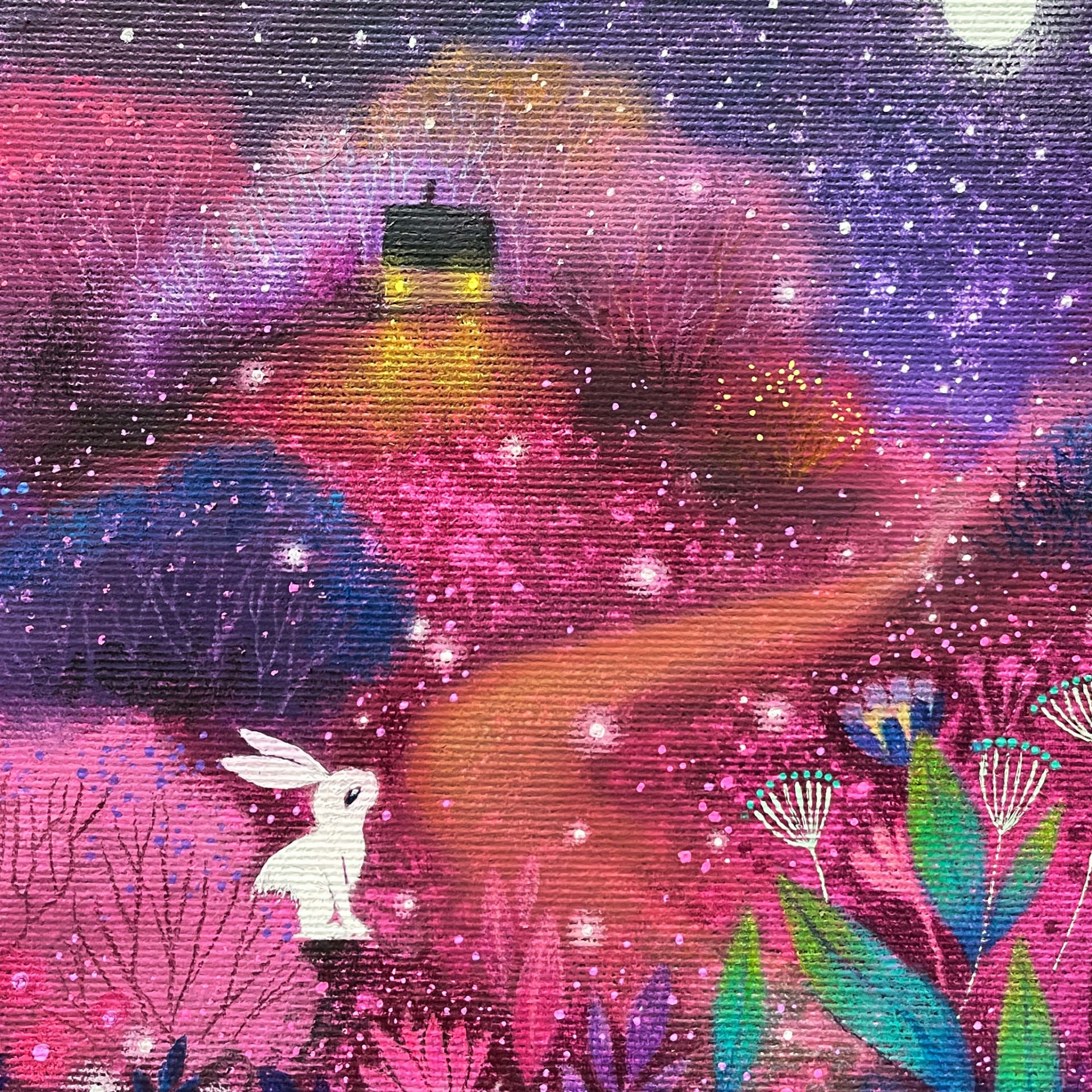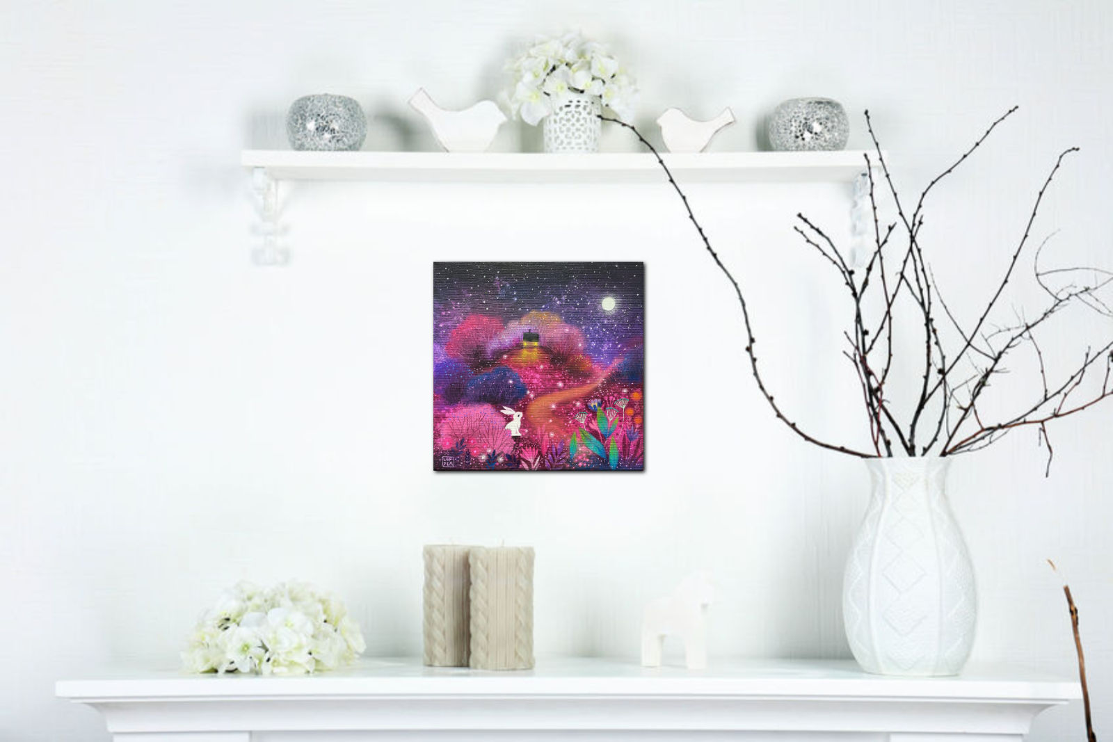 Originál malba, kombinovaná technika: Akryl+pastel, akvarelové pastelky, fixy na plátně, suchý pastel (šepsované plátno natažené na dřevěném rámu), velikost 20x20cm