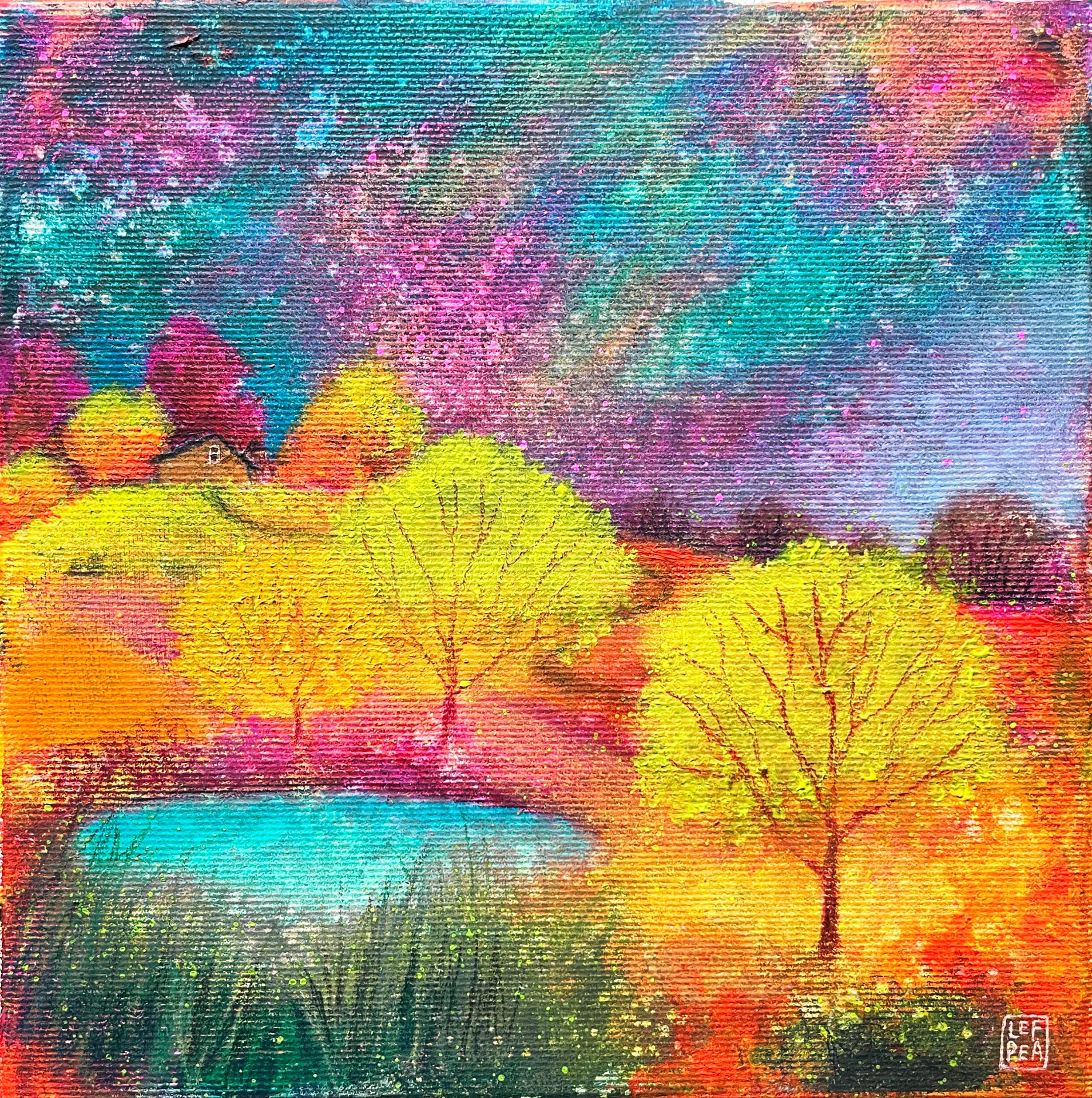 Barevnost se může ve skutečnosti malinko lišit dle závislosti na nastavení monitoru a množství světla při fotografování. Malovány i hrany, netřeba rámovat. Ošetřeno závěrečným lakem.Signováno LEF PEA. Na obraz i jeho kopie popř. tištěné fotografie se vztahují autorská práva.