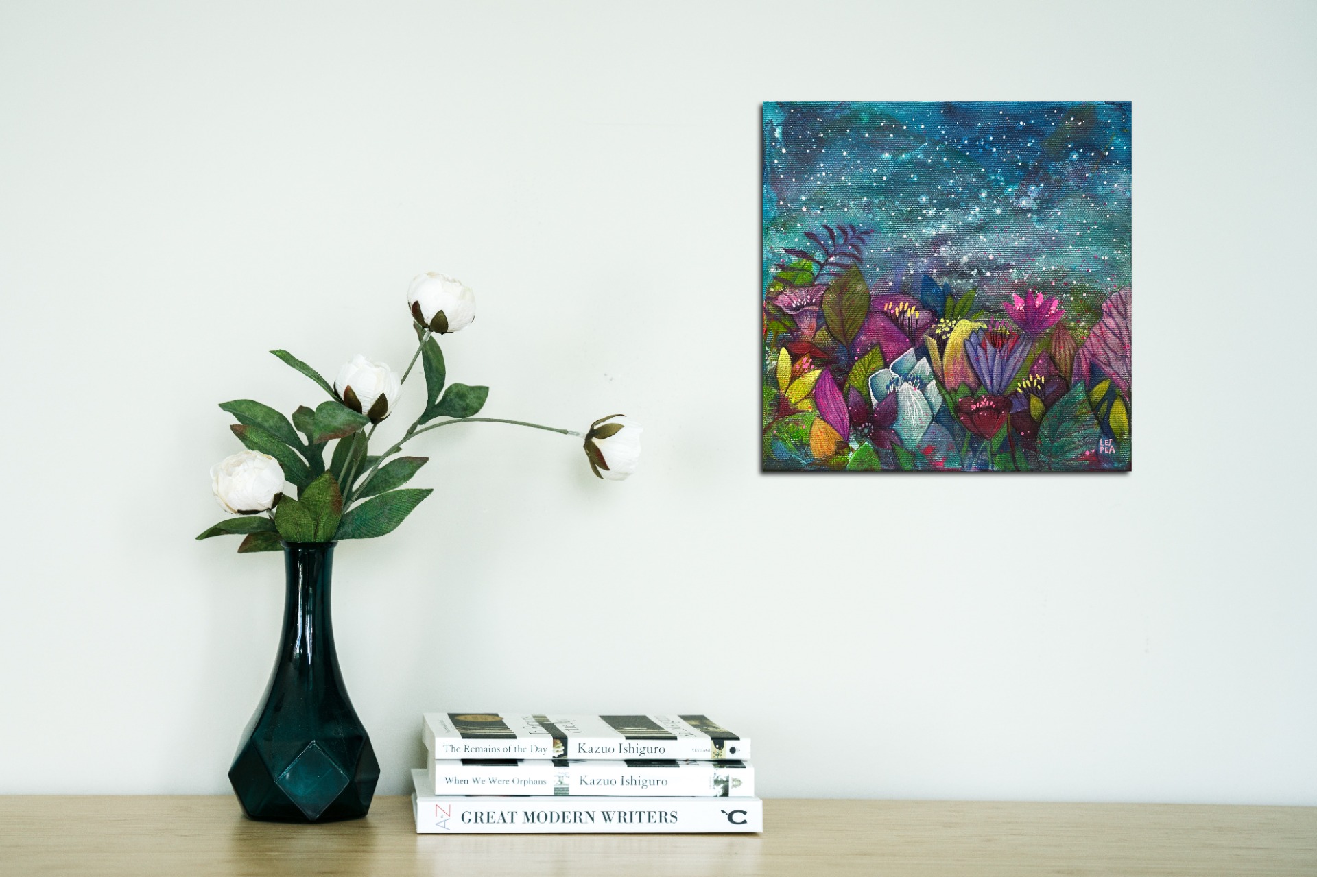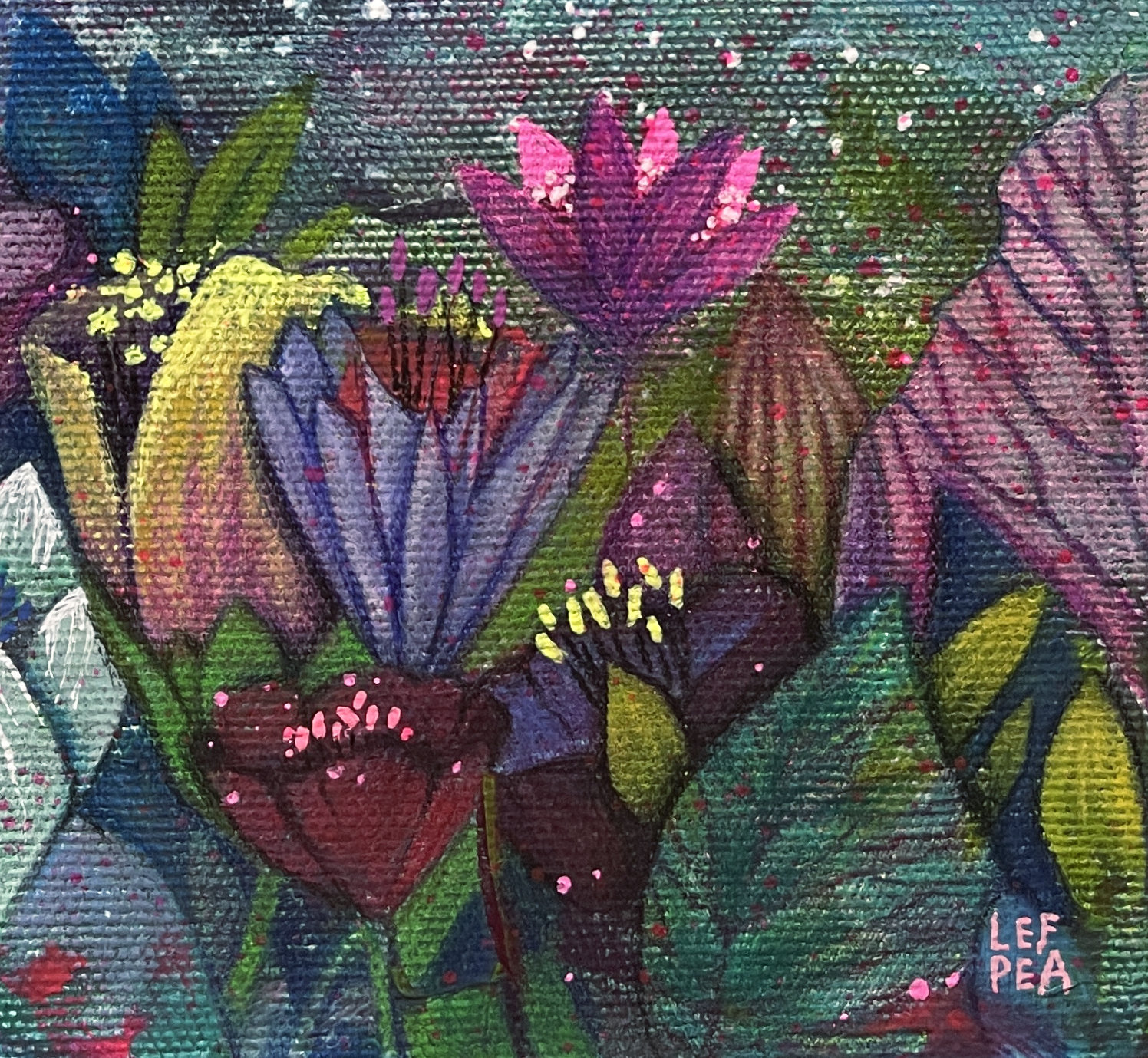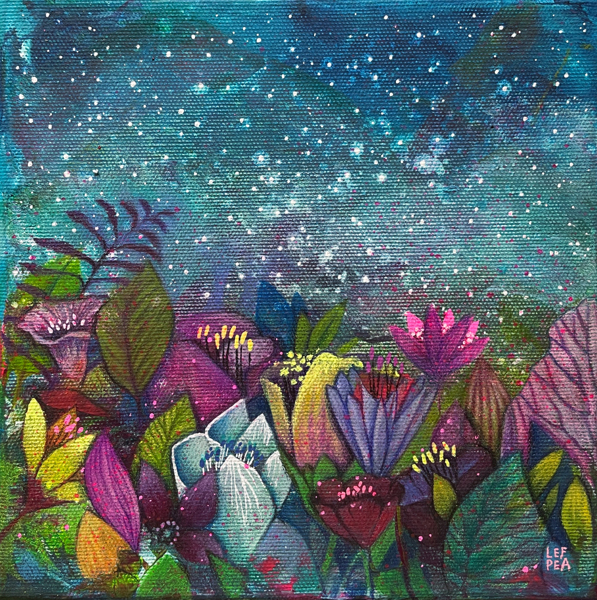 Obraz vznikl spojením akrylu, akvarelových pastelek a fixů, které mu dodávají jemné detaily a snovou atmosféru. Každý tah štětce, každá linka v sobě nese kousek onoho tajemství světa, který možná není viditelný, ale lze ho cítit.Barevnost se může ve skutečnosti malinko lišit dle závislosti na nastavení monitoru a množství světla při fotografování. Malovány i hrany, netřeba rámovat. Ošetřeno závěrečným lakem.Signováno LEF PEA. Na obraz i jeho kopie popř. tištěné fotografie se vztahují autorská práva.