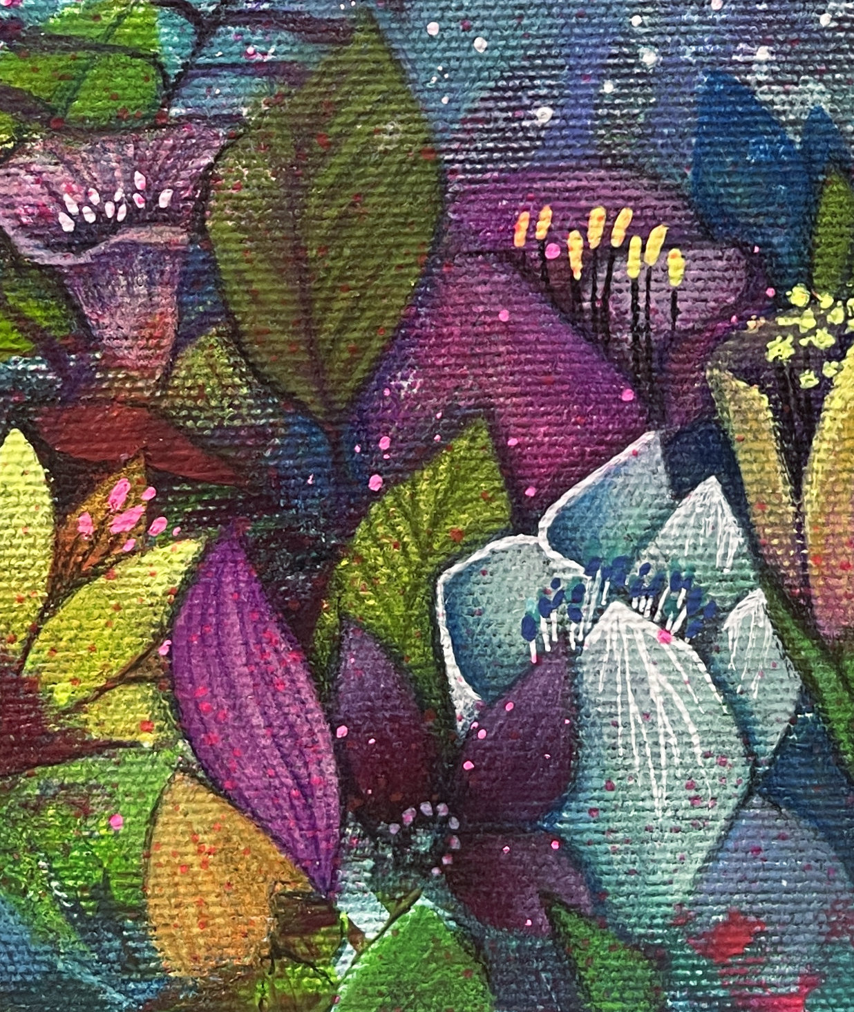 Originál- kombinovaná technika- - Akryl+akvarelové pastelky, fixy na plátně, suchý pastel (šepsované plátno natažené na dřevěném rámu), velikost 20x20cm
