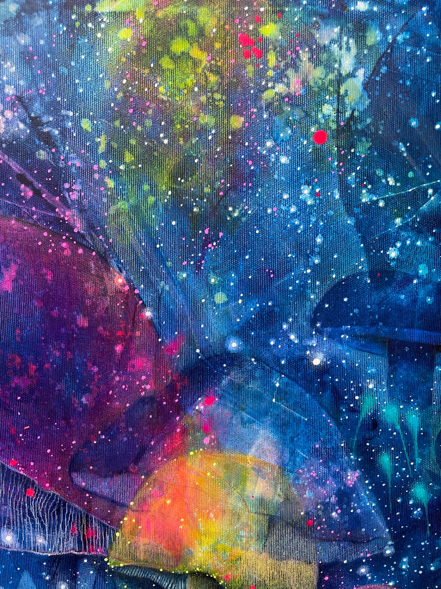 Originál malba, kombinovaná technika: Akryl+pastel, akvarelové pastelky, fixy na plátně, suchý pastel (šepsované plátno natažené na dřevěném rámu), velikost 50x50cm