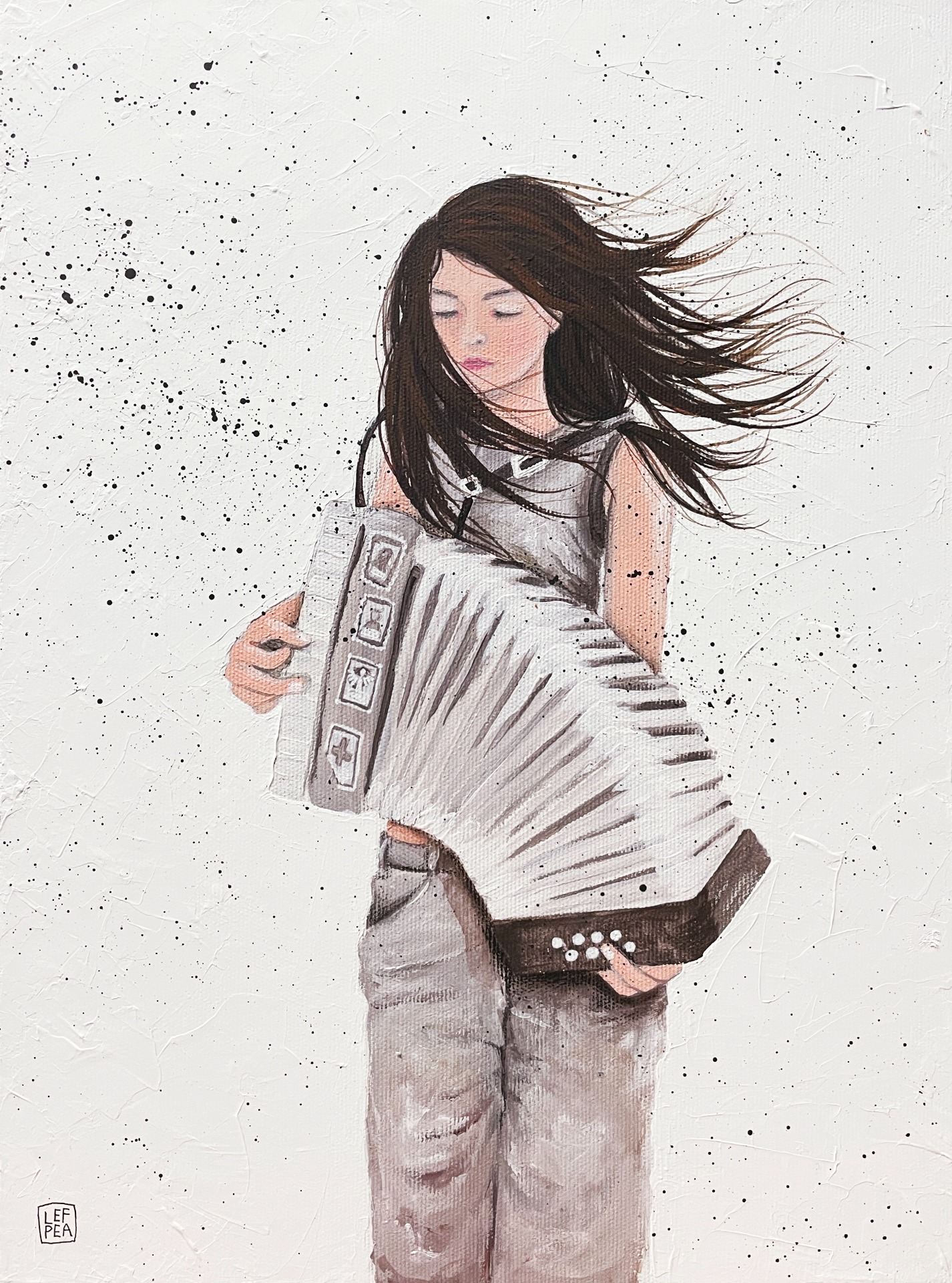 Barevnost se může ve skutečnosti malinko lišit dle závislosti na nastavení monitoru a množství světla při fotografování. Malovány i hrany, netřeba rámovat. Ošetřeno závěrečným lakem.Signováno LEF PEA. Na obraz i jeho kopie popř. tištěné fotografie se vztahují autorská práva.