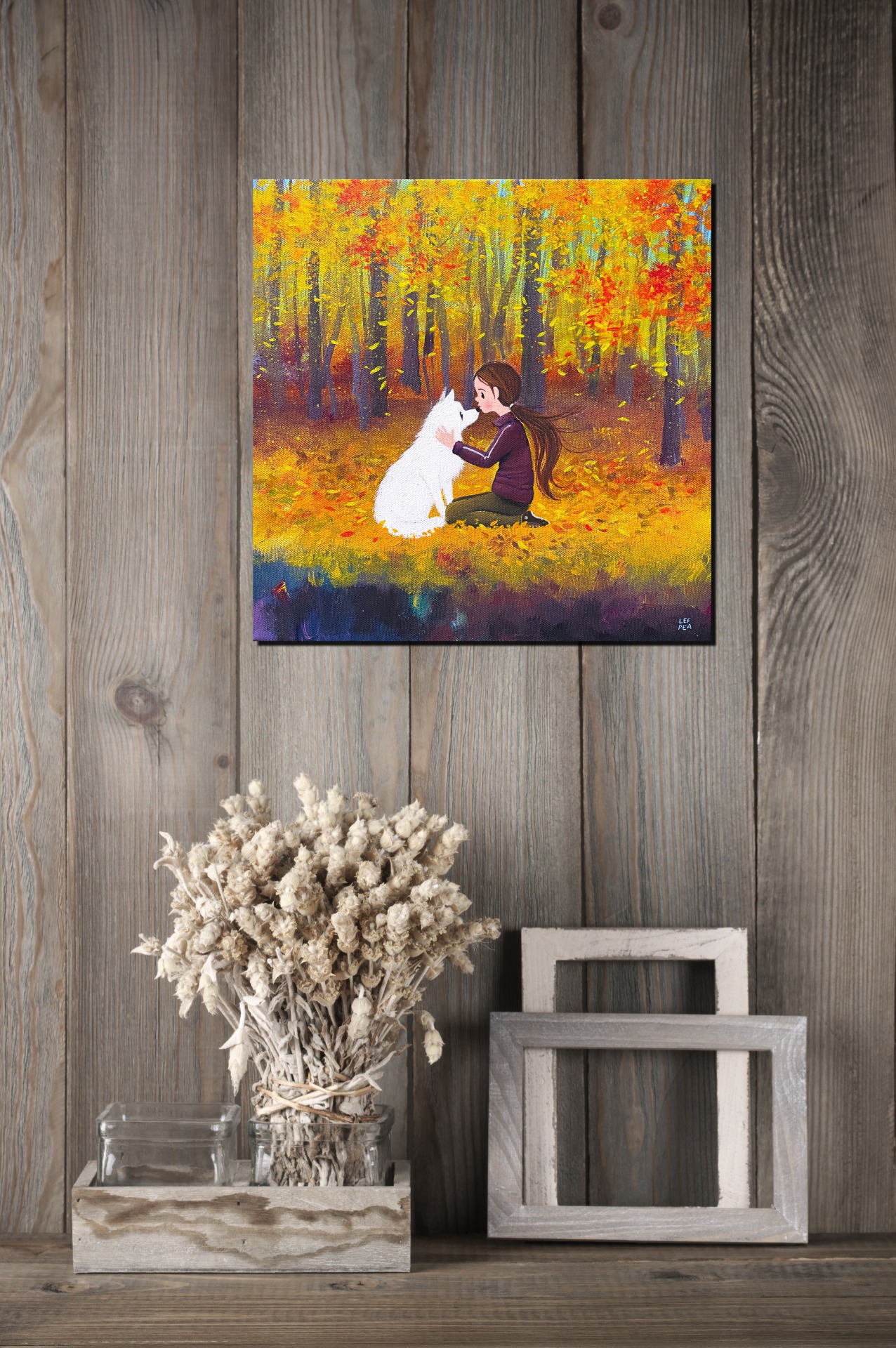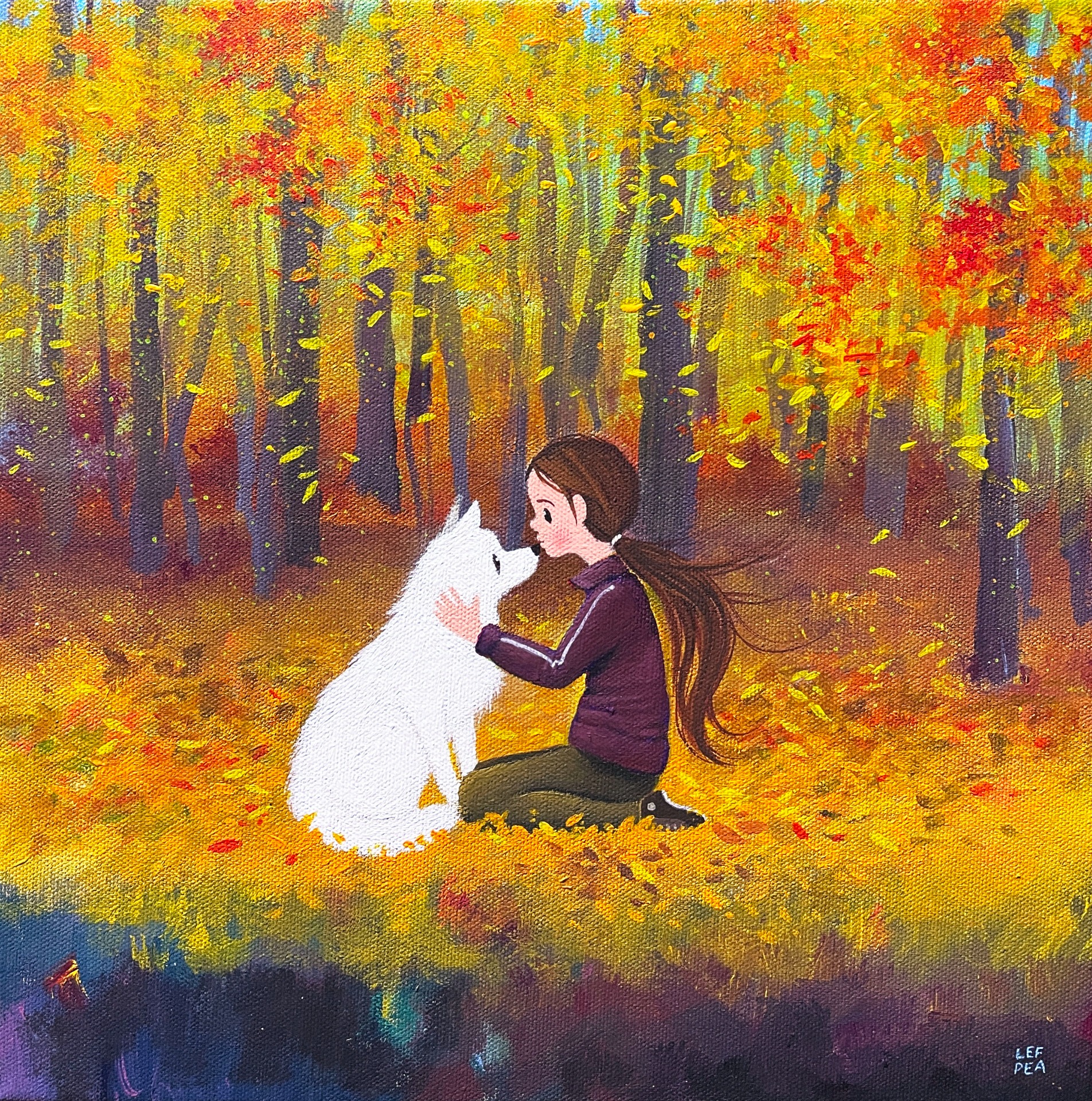 Barevnost se může ve skutečnosti malinko lišit dle závislosti na nastavení monitoru a množství světla při fotografování. Malovány i hrany, netřeba rámovat.  Ošetřeno závěrečným lakem.Signováno LEF PEA. Na obraz i jeho kopie popř. tištěné fotografie se vztahují autorská práva.