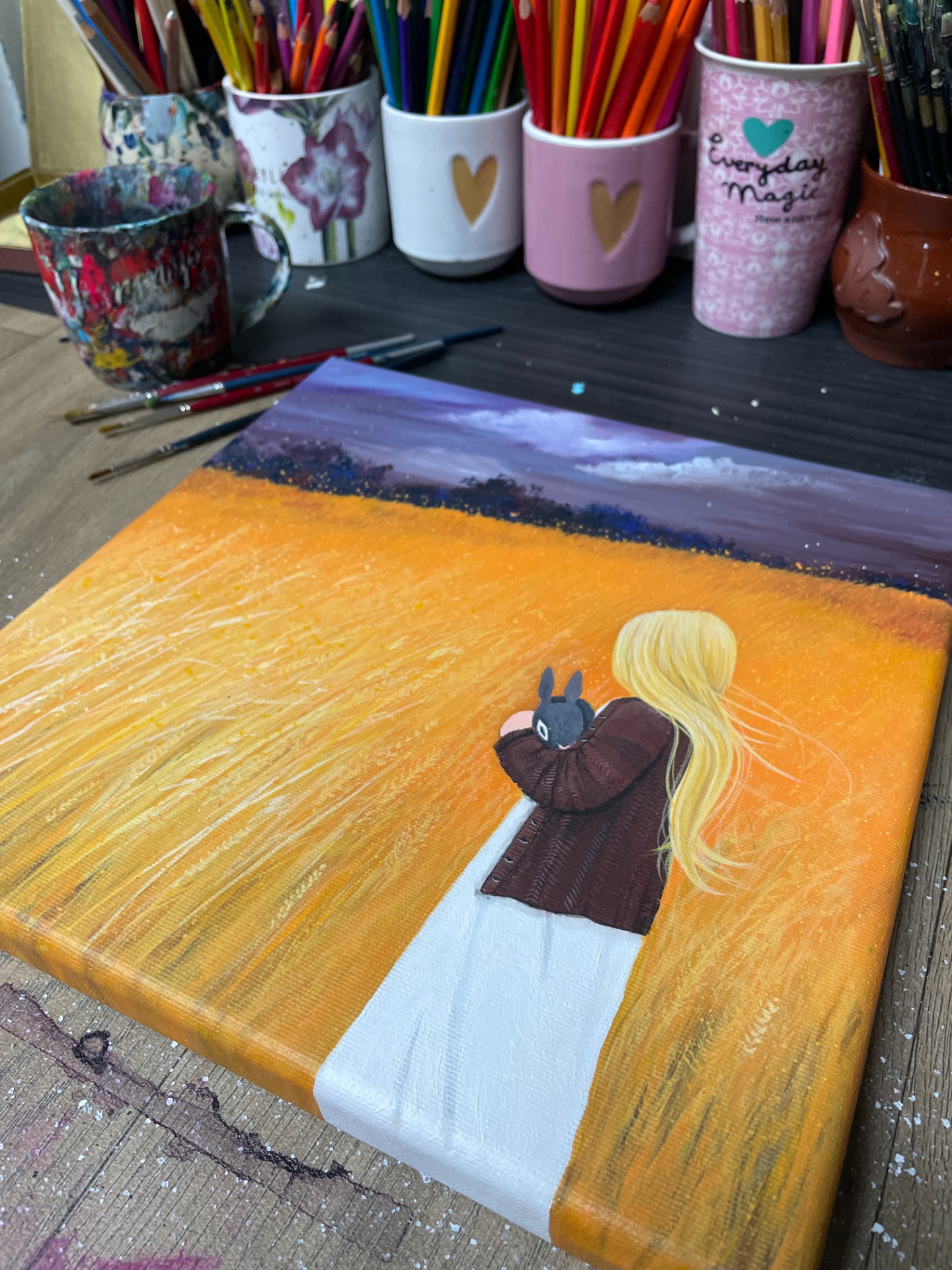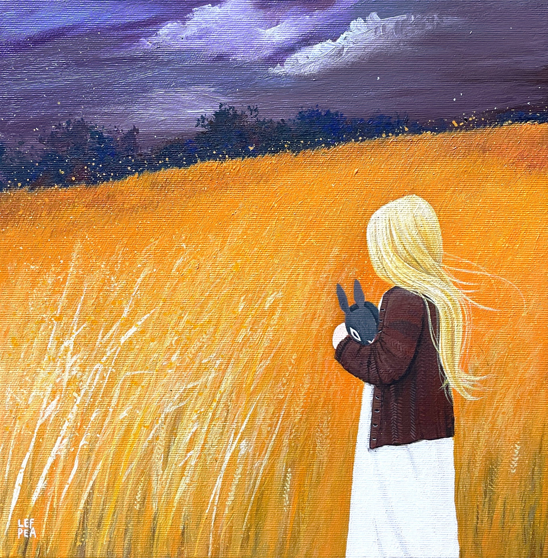 Barevnost se může ve skutečnosti malinko lišit dle závislosti na nastavení monitoru a množství světla při fotografování. Malovány i hrany, netřeba rámovat. Ošetřeno závěrečným lakem. Signováno LEF PEA. Na obraz i jeho kopie popř. tištěné fotografie se vztahují autorská práva.