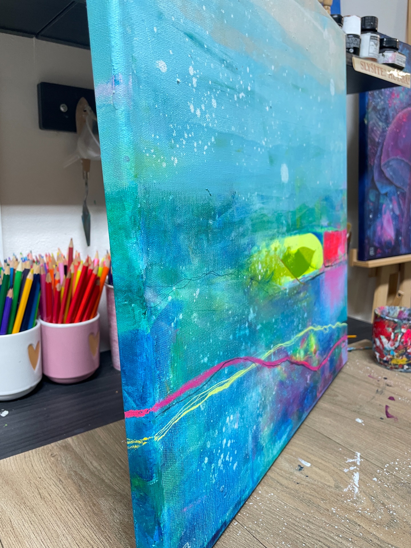 Vedle malování květů a přírodních motivů je pro mě abstrakce důležitým prostorem svobody. Je to místo, kde nemusím nic popisovat ani vysvětlovat. Abstraktní obraz nevzniká podle předlohy. Vzniká postupnými vrstvami, hledáním rovnováhy, někdy i dlouhým čekáním, než se obraz sám "ukáže" Možná právě proto působí abstrakce jednoduše. Ale za tou jednoduchostí je často mnoho práce, rozhodování a také odvaha něco ubrat. Čím méně prvků v obraze zůstane, tím větší význam má každý z nich. Abstrakce dává prostor představivosti. Každý člověk v ní může najít vlastní krajinu nebo vlastní ticho.