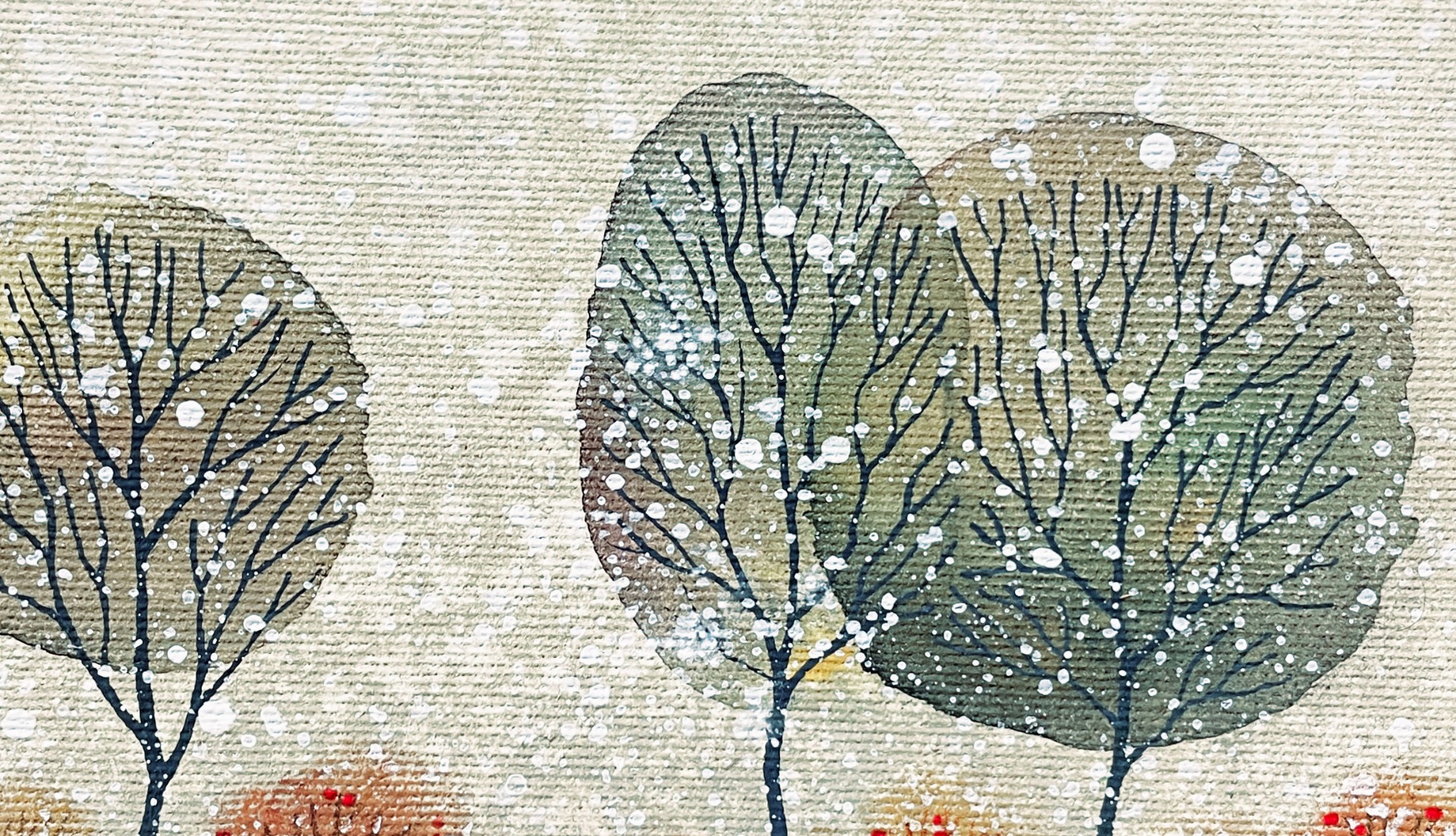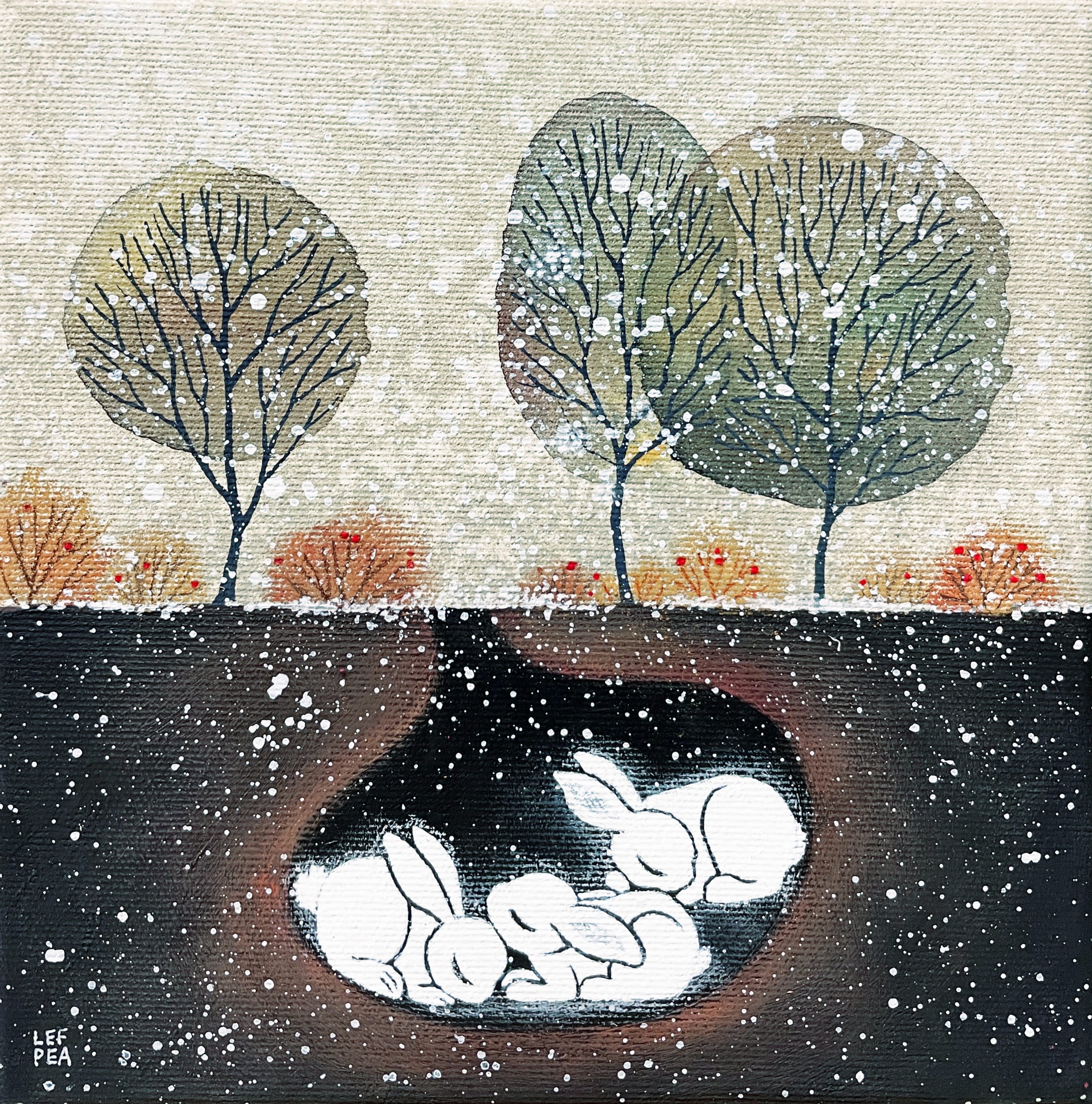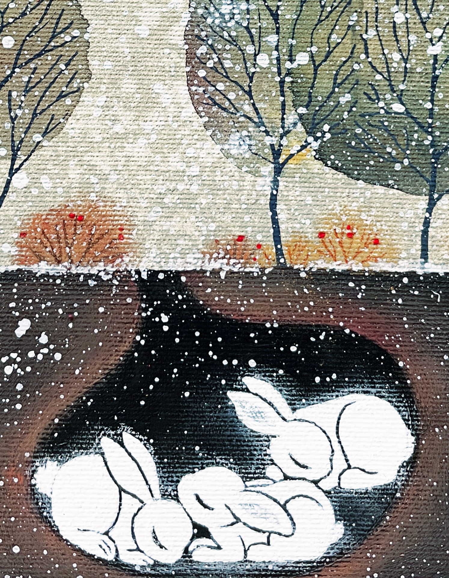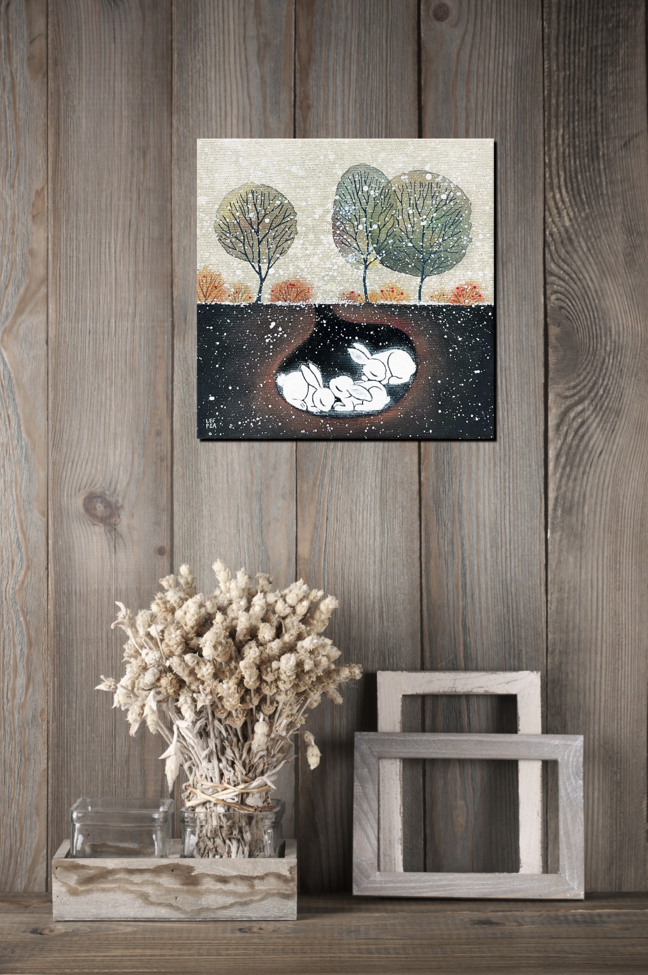 S obrazy na plátně prožívám příběh. A s těmi zasněženými ho prožívám o to víc, že vše všechny ty pelíšky pod zemí, schovky, mi dávají pocit bezpečí, který bych chtěla sdílet. V pelíšku, ve vatičce, v peříčku, v hnízdečku...Obraz pro něžnou duši, která ochraňuje malé a ještě menší.