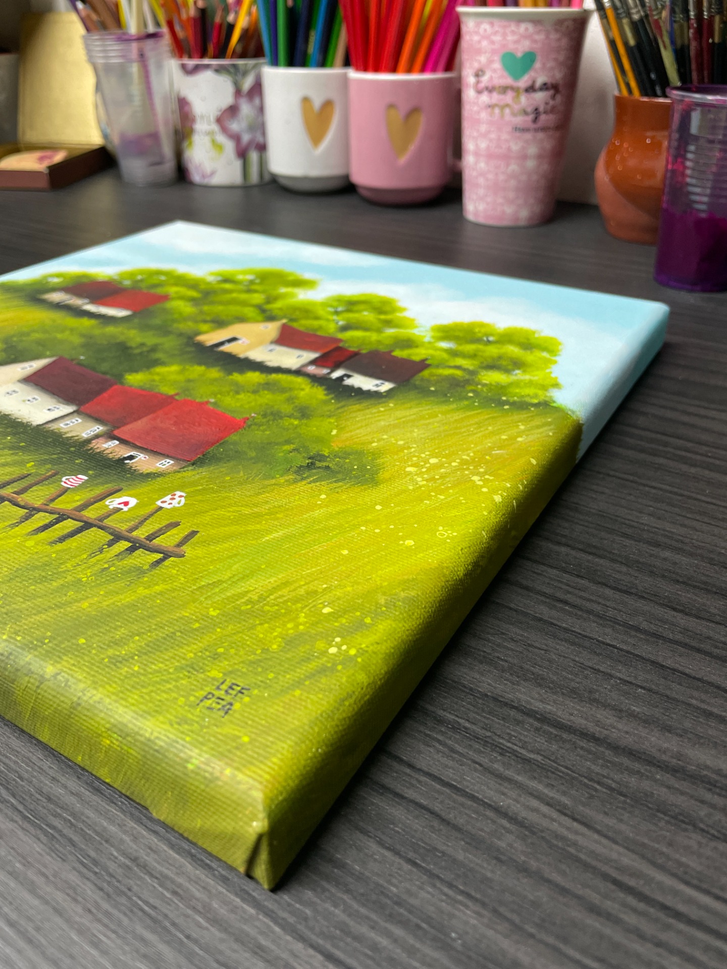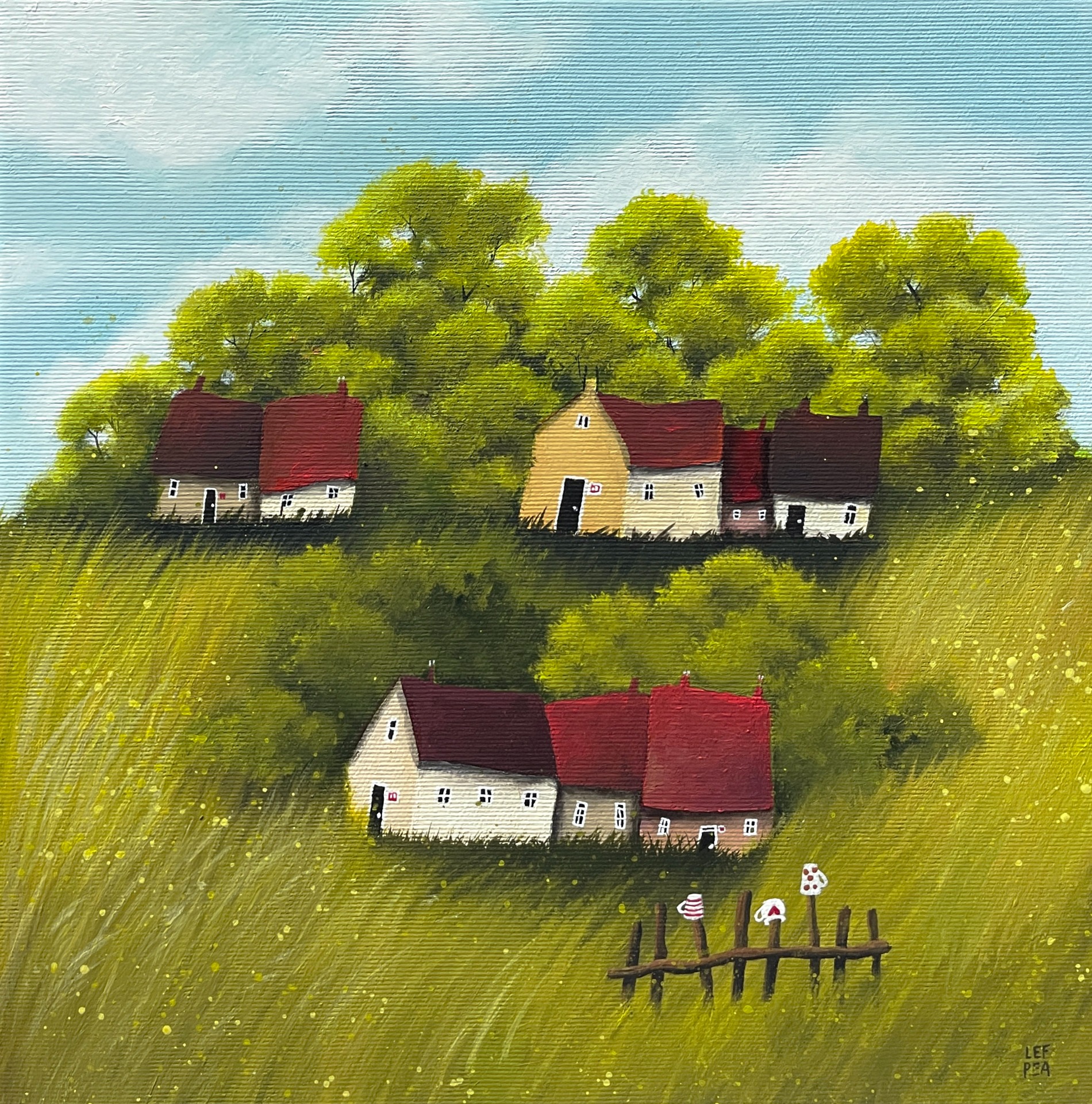Barevnost se může ve skutečnosti malinko lišit dle závislosti na nastavení monitoru a množství světla při fotografování. Malovány i hrany, netřeba rámovat. Ošetřeno závěrečným lakem. Signováno LEF PEA. Na obraz i jeho kopie popř. tištěné fotografie se vztahují autorská práva.