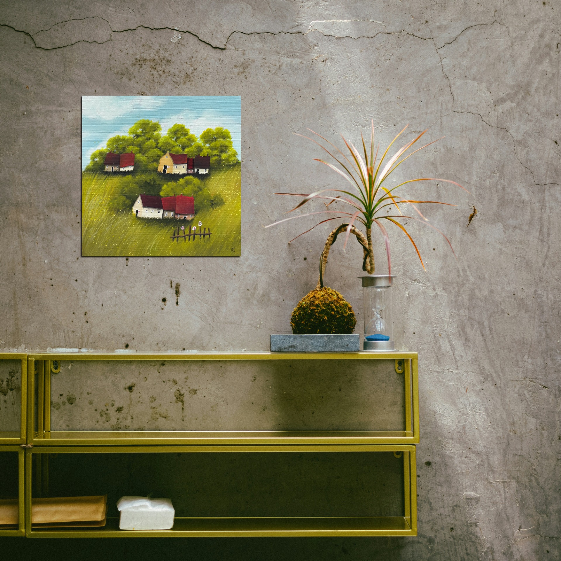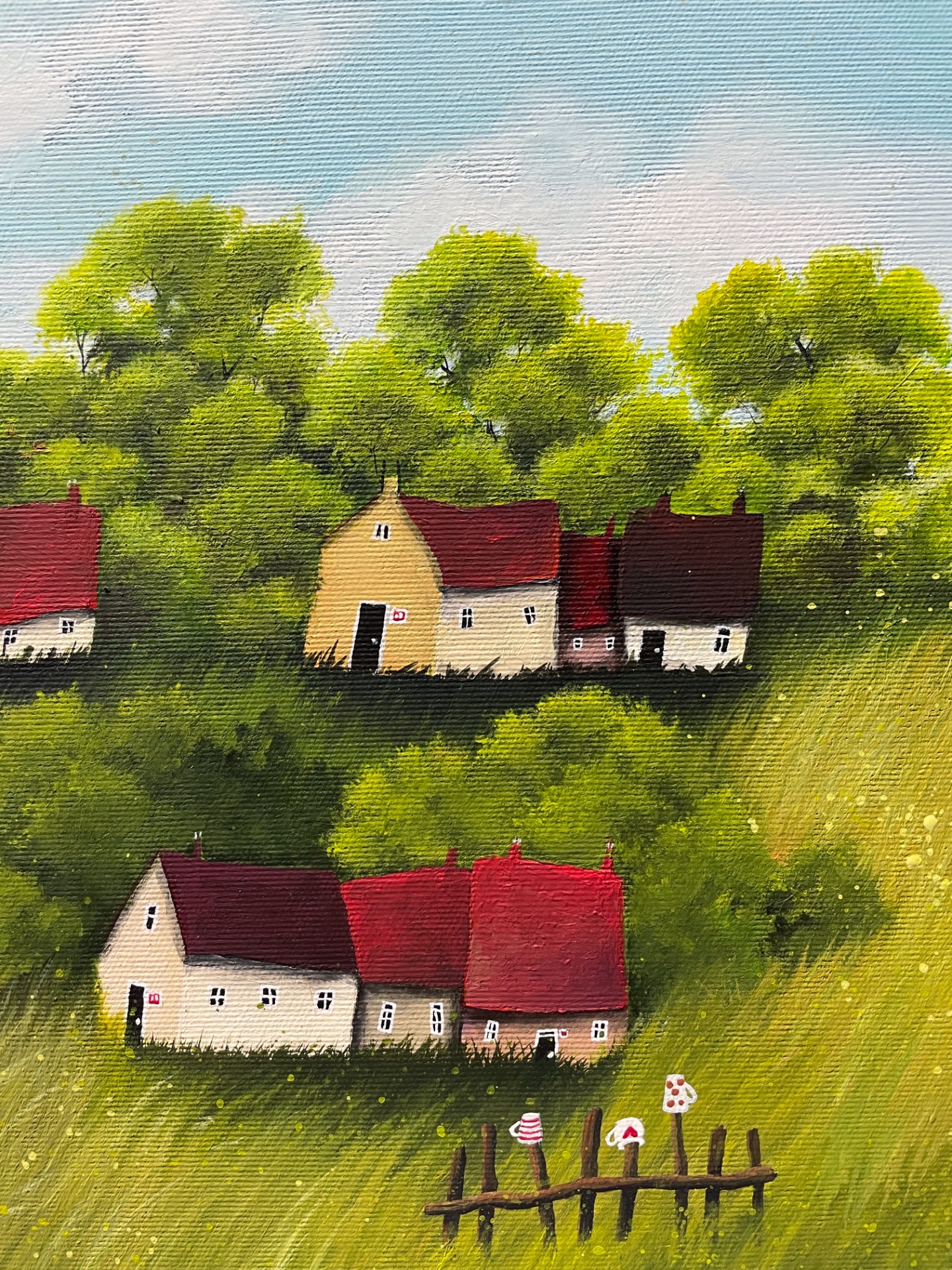 První letošní vesnička. Domečky, boudičky v zelené louce, která každým tahem štětce víc a víc voní z obrazu až pod nos. Nenasytně ochutnávám vzduch a hladím cestu k domovu. Pro duši, která touží spočinout a vnímat ticho mezi slovy. Traviny se mi nikdy neokoukají a nezevšední.