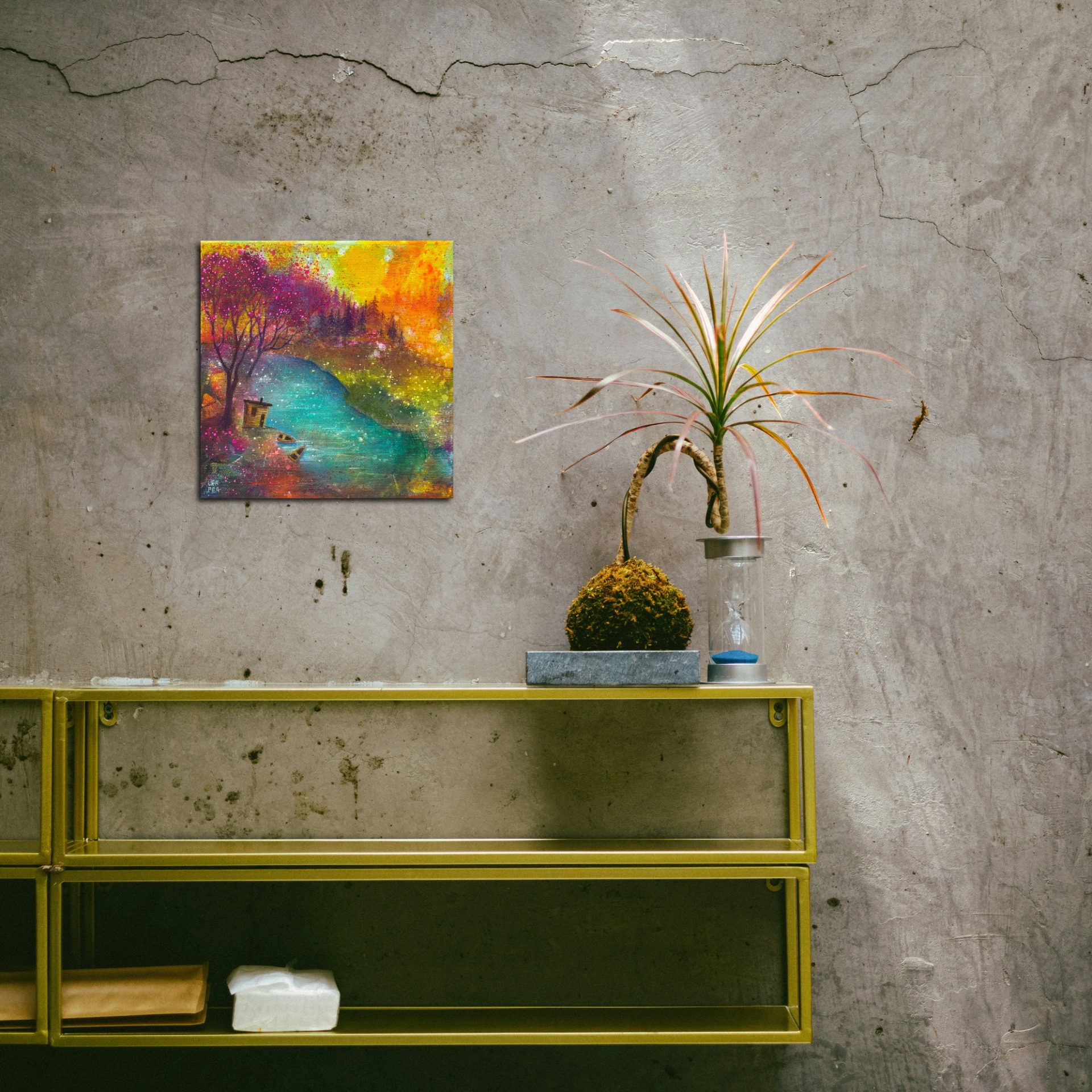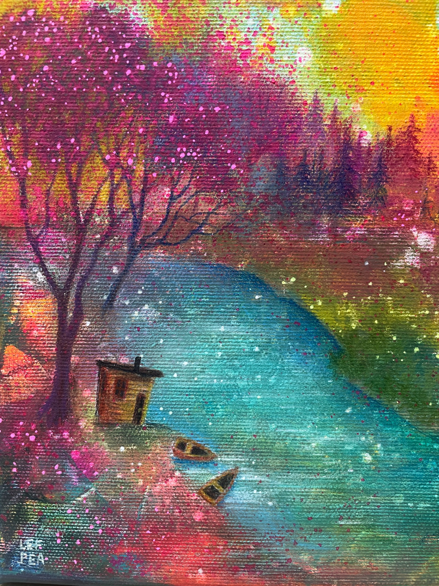 Barevnost se může ve skutečnosti malinko lišit dle závislosti na nastavení monitoru a množství světla při fotografování. Malovány i hrany, netřeba rámovat. Ošetřeno závěrečným lakem.Signováno LEF PEA. Na obraz i jeho kopie popř. tištěné fotografie se vztahují autorská práva.