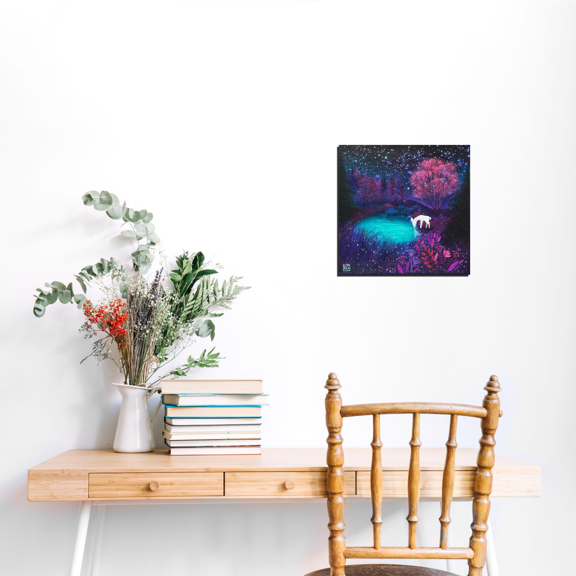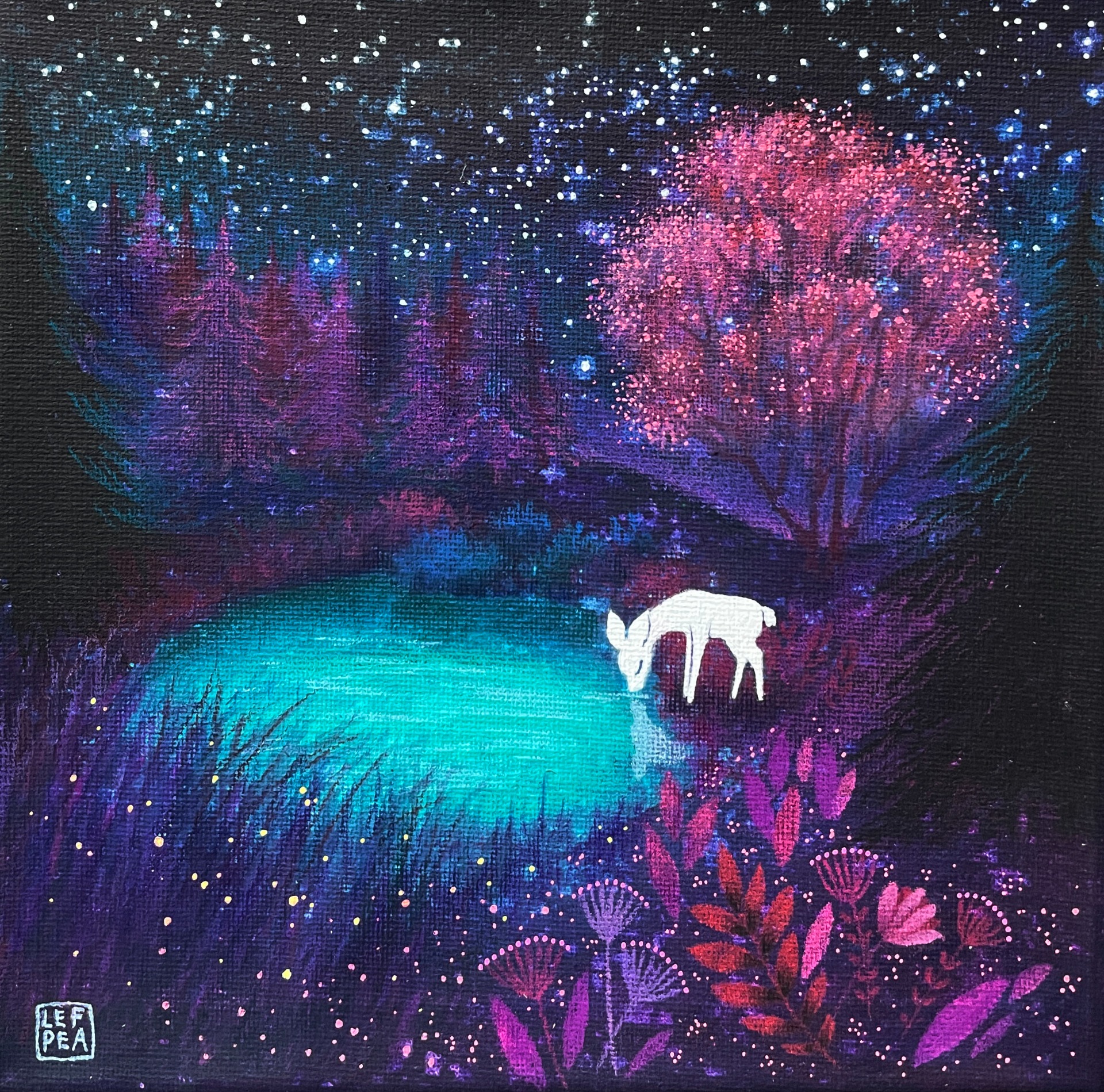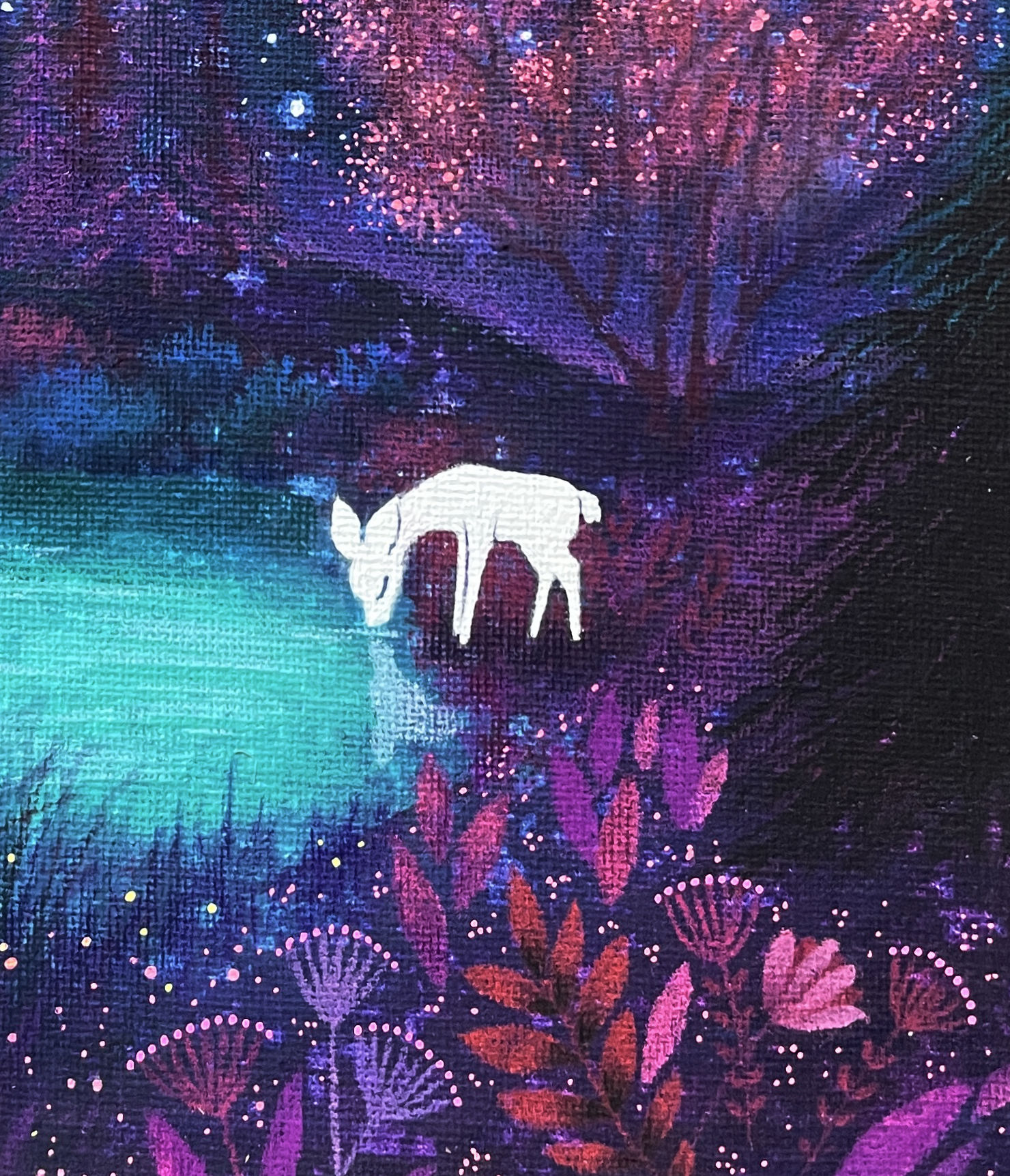 Občas pošlu do světa obraz za zvýhodněnou promo cenu. Tentokrát tajemná bílá srnka kračící mezi světy, za sny..