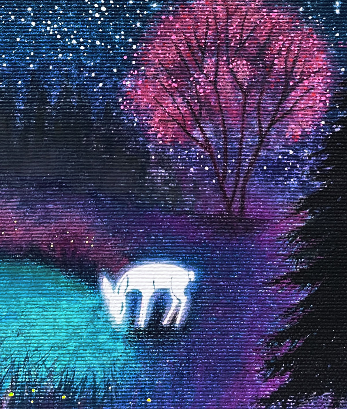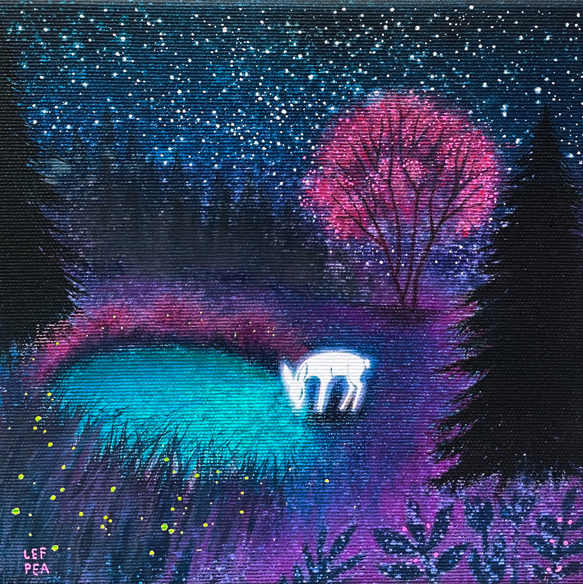 Občas pošlu do světa obraz za zvýhodněnou promo cenu. Tentokrát tajemná bílá srnka kračící mezi světy, za sny..