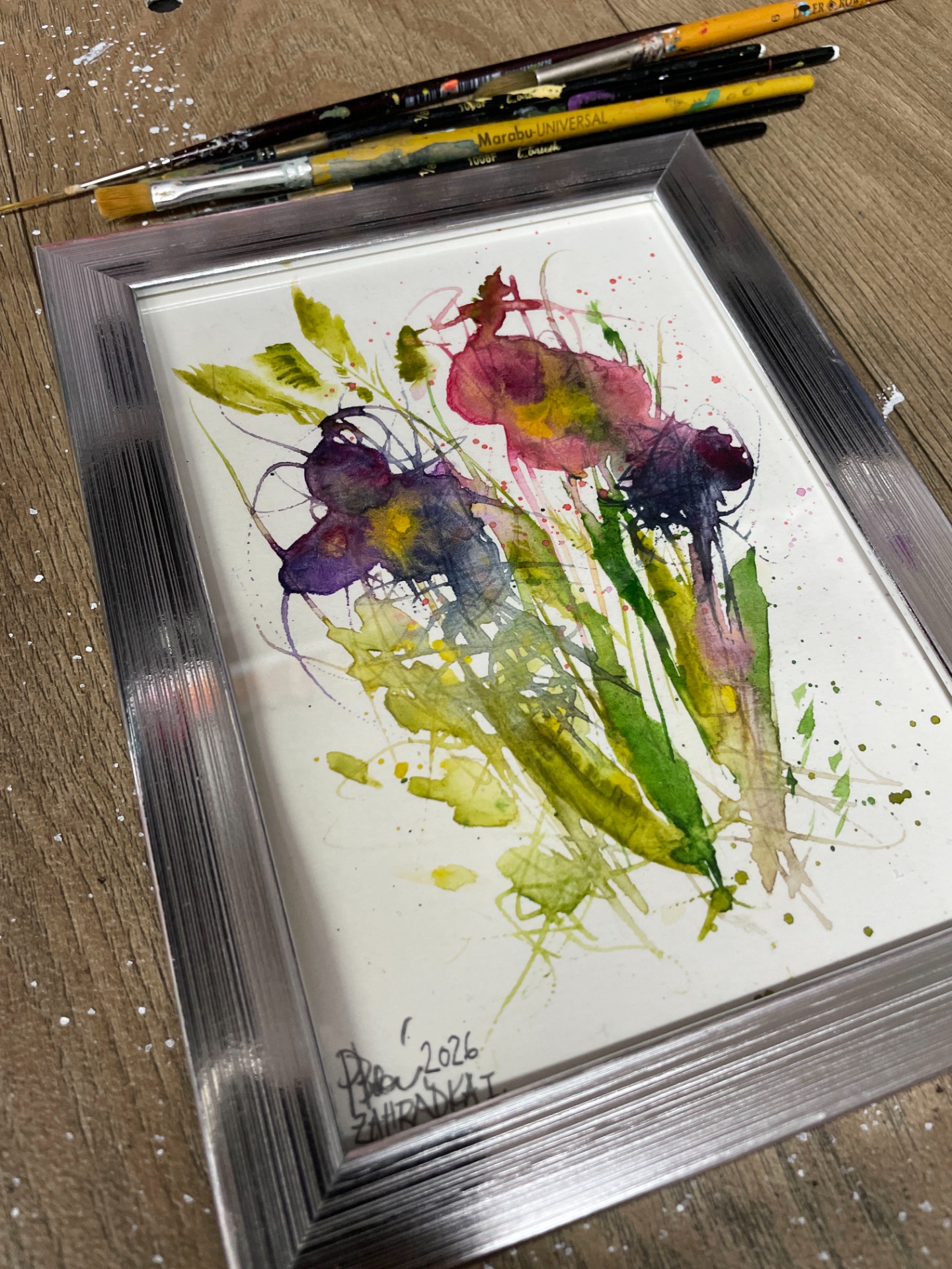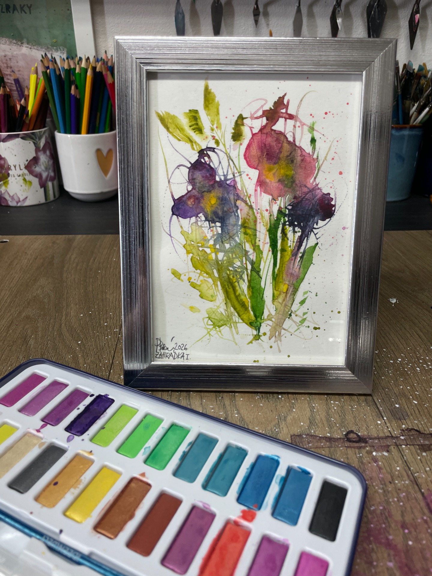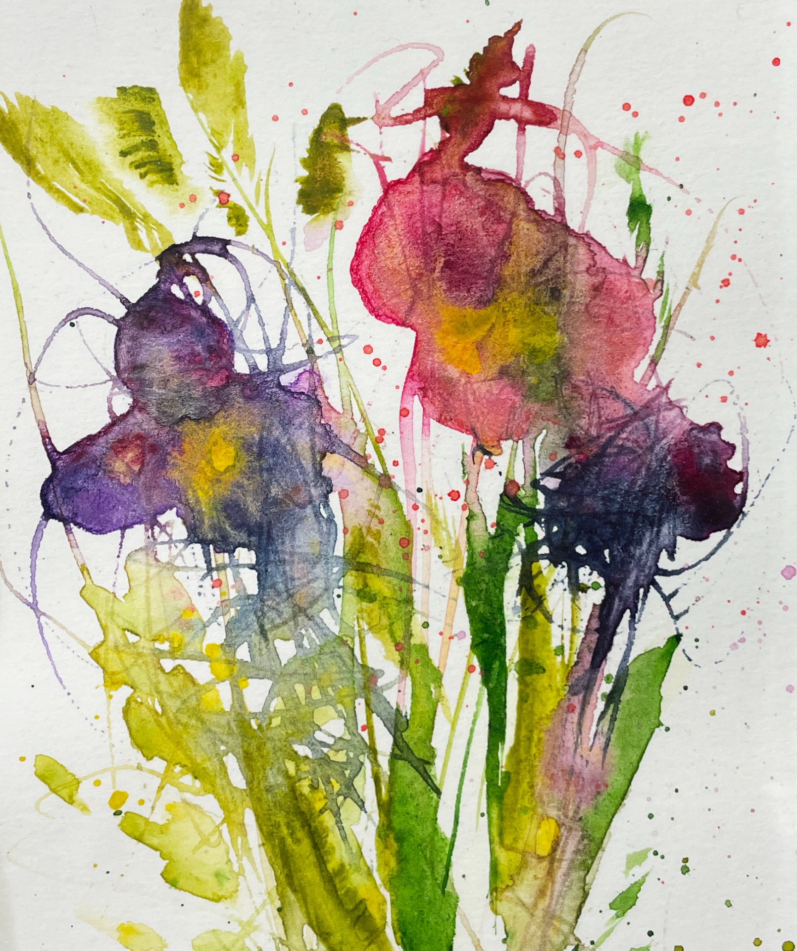 Tento akvarel je součástí cyklu: Paměti doteků , který zachycuje květiny ne jako konkrétní druhy, ale jako otisky vzpomínek, pocitů a pohlazení. Jemné, ale zároveň živé stopy.