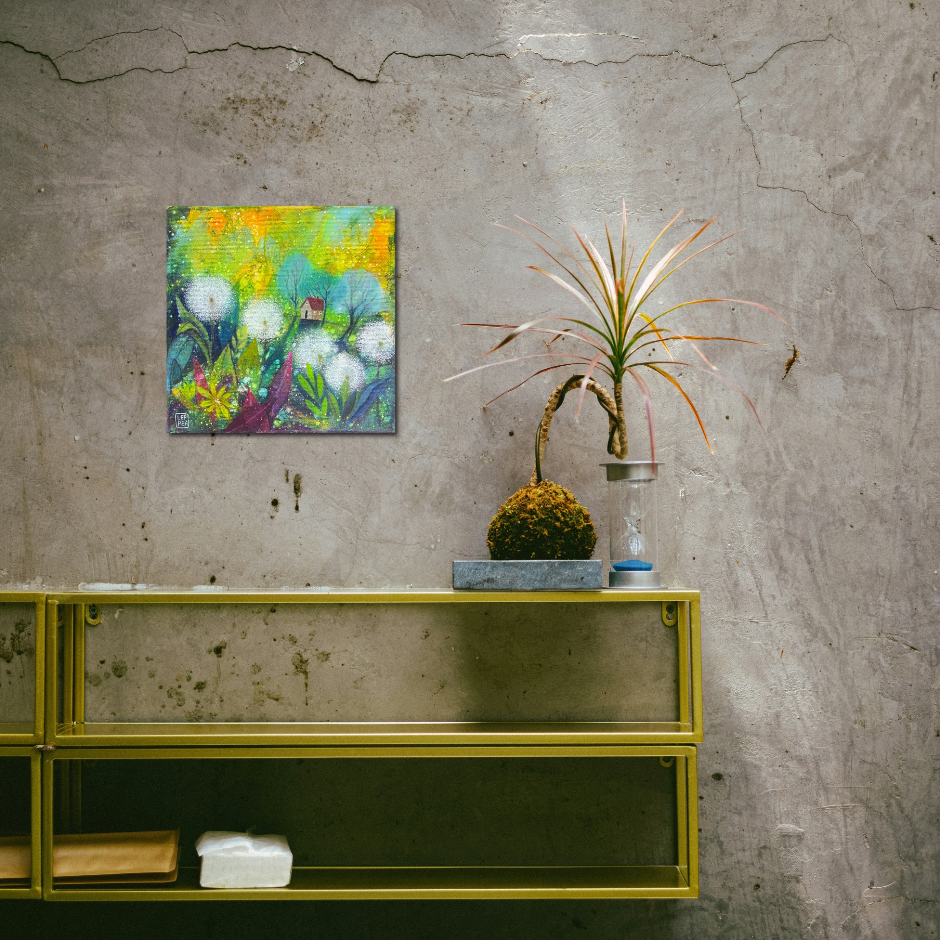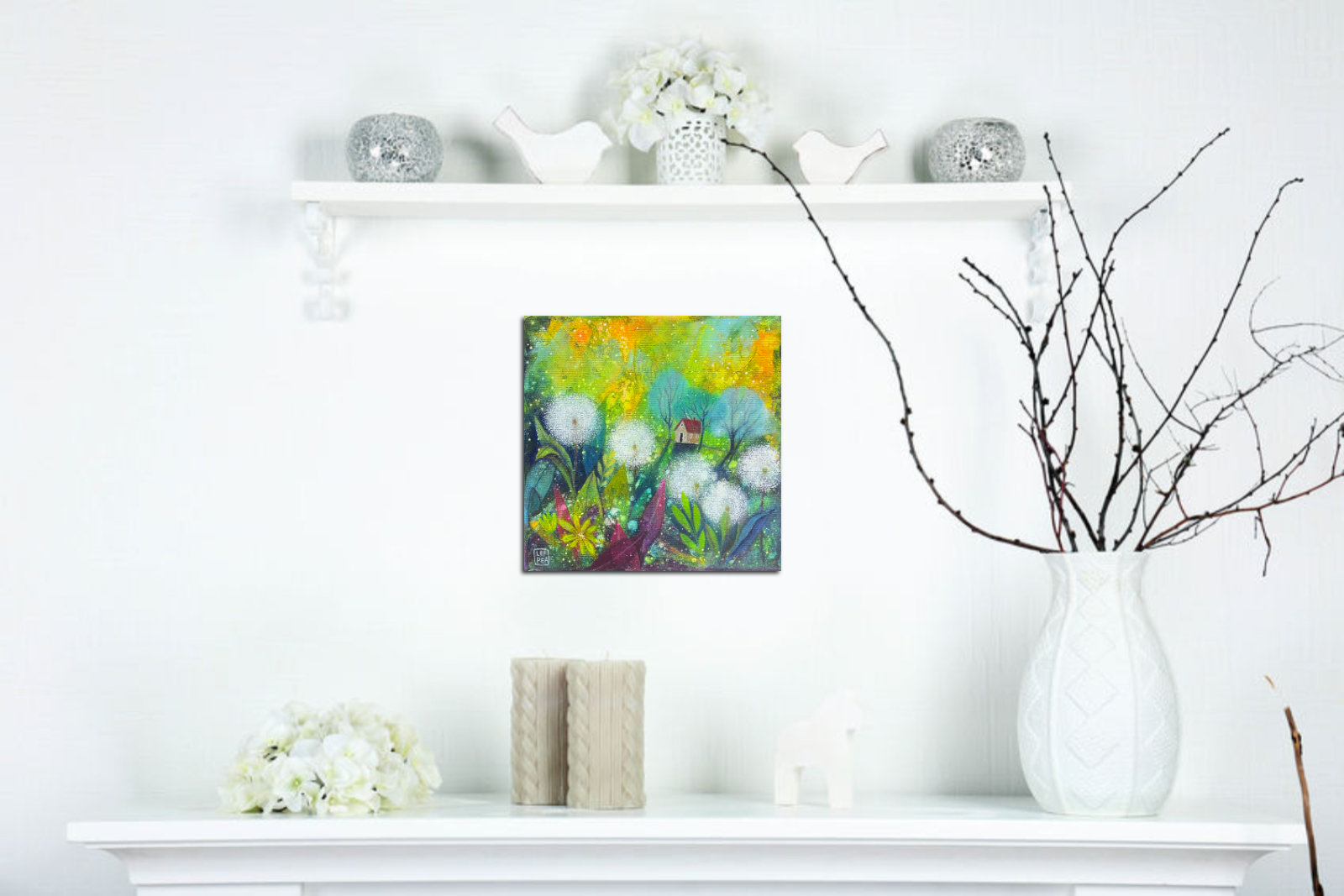 Nový malý něžný obrázek krajiny, která nikam nespěchá..Snová zahrada plná pampeliškového chmýří, zahrádka na prahu ráje, něco mezi skutečností a představou. Obrázek pro zahradnici nebo zahradníčka, který stejně jako já v lednu netrpělivě vyčkává na všechny odstíny zelené.