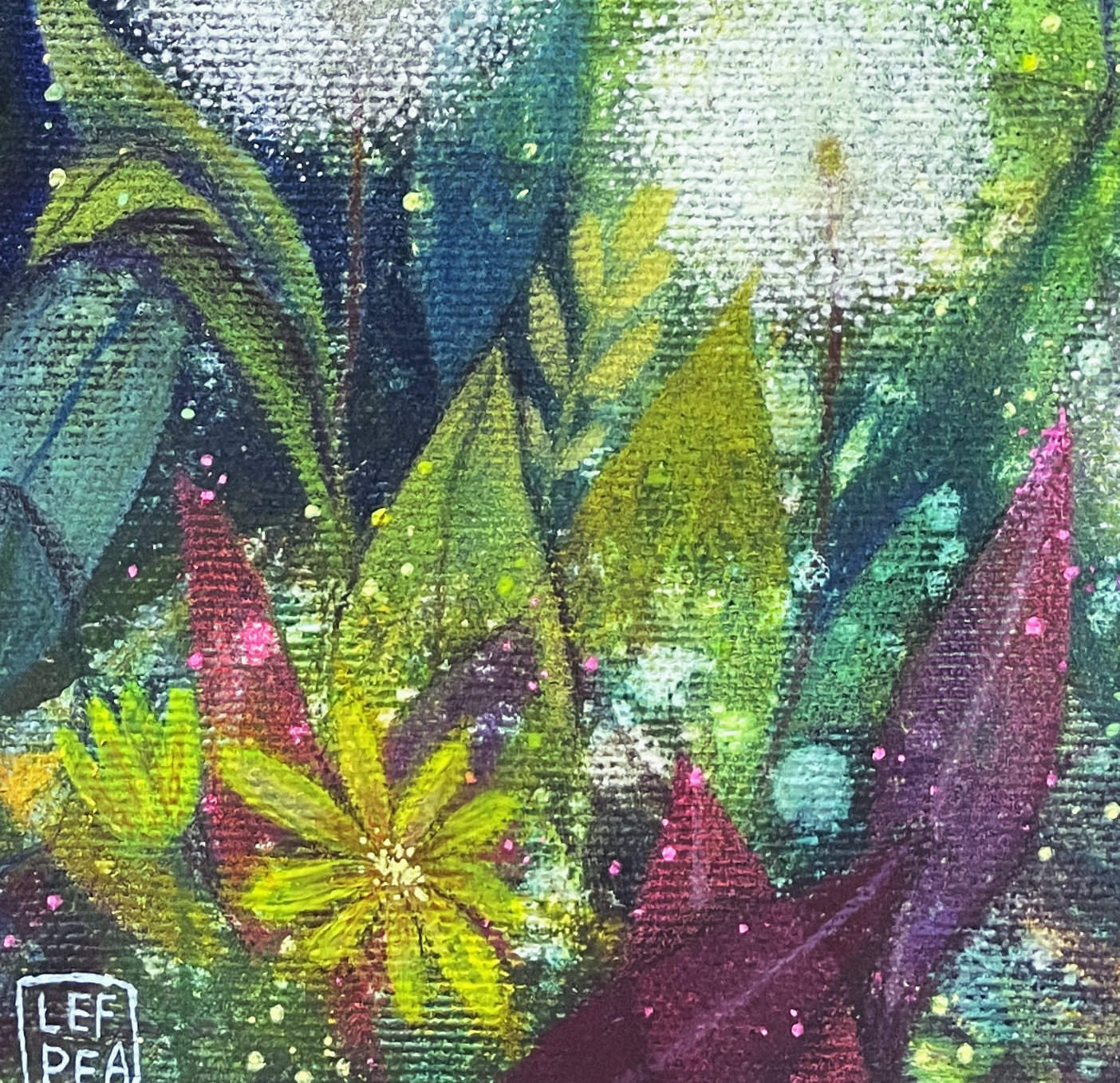 Barevnost se může ve skutečnosti malinko lišit dle závislosti na nastavení monitoru a množství světla při fotografování. Malovány i hrany, netřeba rámovat. Ošetřeno závěrečným lakem.Signováno LEF PEA. Na obraz i jeho kopie popř. tištěné fotografie se vztahují autorská práva.