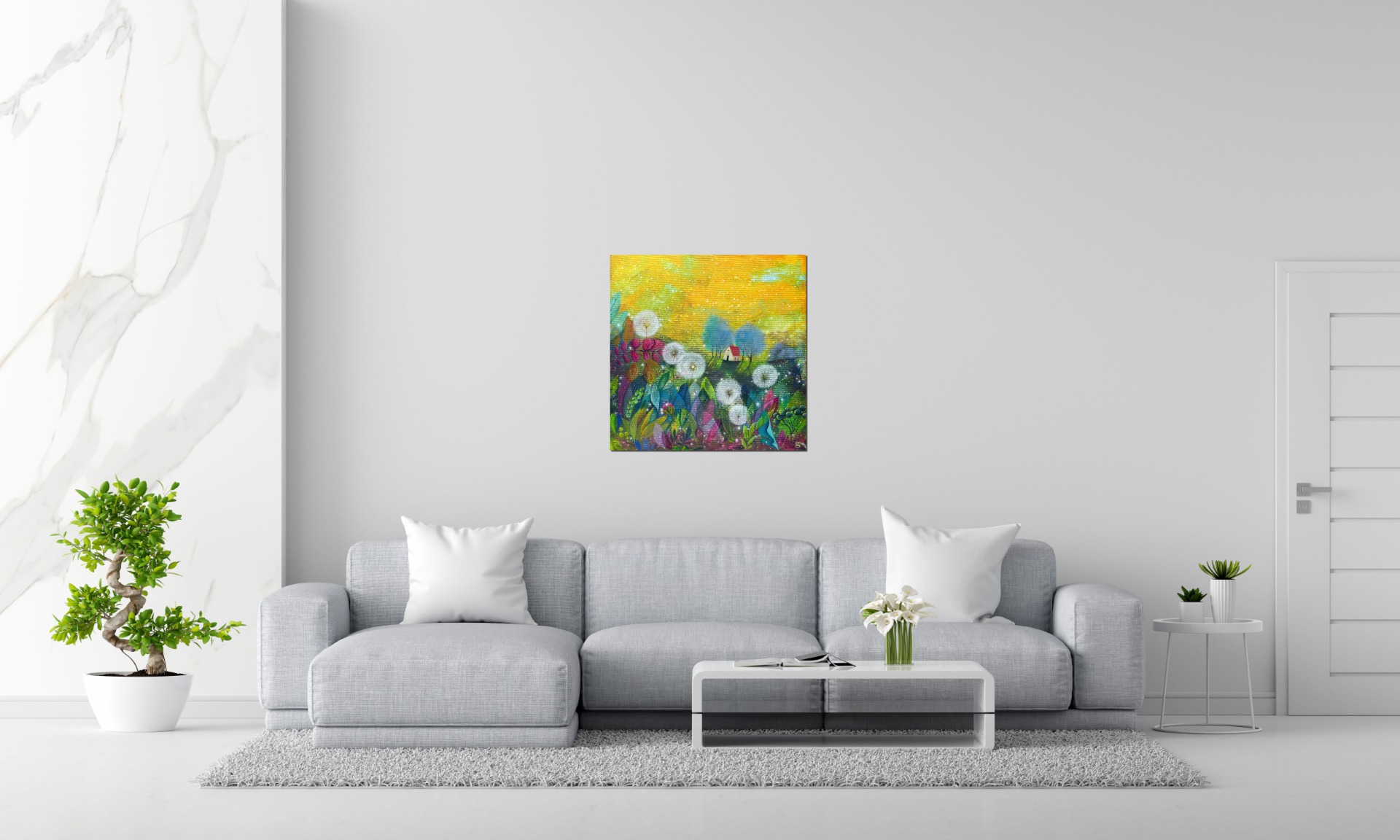 Originál malba, kombinovaná technika: Akryl, pastel, akvarelové pastelky, fixy na plátně, suchý pastel (šepsované plátno natažené na dřevěném rámu), velikost 50x50cm